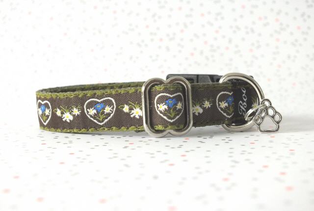 Liebe Züchter und zukünftige Welpen Eltern hier findest du leichte, kleine Welpen Halsbänder aus Gurtband in 1,5 cm Breite, mit unterschiedlichen, niedlichen und teilweise zuckersüßen detailverliebten Webband Motiven. Boo's Welpen Halsbänder Minni sind von mir ganz auf kleirassige Welpen zugeschnitten und eignen sich perfekt als erstes Halsband zum Auszug/ Einzug ins neue Zuhause. Der Halsumfang lässt sich durch einen Metall Schieber größenverstellen und reicht von ca. 16-25 cm oder ca. 17- 30 cm. Ein schwarzer Klickverschluss, leicht gewölbt, sorgt so für einen guten Sitz am Hals der Mini Lakritze-Nase. Der Anhänger am D-Ring ist nur Tüddelkrams fürs Foto und könnte anders ausfallen. Bei Nichtgefallen kann er ganz leicht von dir abgemacht werden. Viele Halsbänder sind Einzelstücke deshalb ist die Bestellmenge je Halsband Minni immer nur 1 x