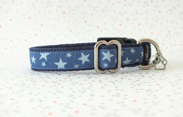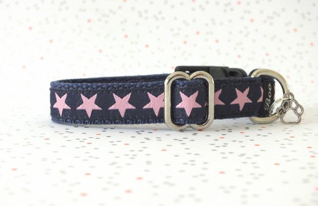 Liebe Züchter und zukünftige Welpen Eltern hier findest du leichte, kleine Welpen Halsbänder aus Gurtband in 1,5 cm Breite, mit unterschiedlichen, niedlichen und teilweise zuckersüßen detailverliebten Webband Motiven. Boo's Welpen Halsbänder Minni sind von mir ganz auf kleirassige Welpen zugeschnitten und eignen sich perfekt als erstes Halsband zum Auszug/ Einzug ins neue Zuhause. Der Halsumfang lässt sich durch einen Metall Schieber größenverstellen und reicht von ca. 16-25 cm oder ca. 17- 30 cm. Ein schwarzer Klickverschluss, leicht gewölbt, sorgt so für einen guten Sitz am Hals der Mini Lakritze-Nase. Der Anhänger am D-Ring ist nur Tüddelkrams fürs Foto und könnte anders ausfallen. Bei Nichtgefallen kann er ganz leicht von dir abgemacht werden. Viele Halsbänder sind Einzelstücke deshalb ist die Bestellmenge je Halsband Minni immer nur 1 x !