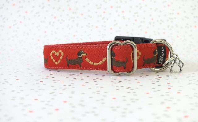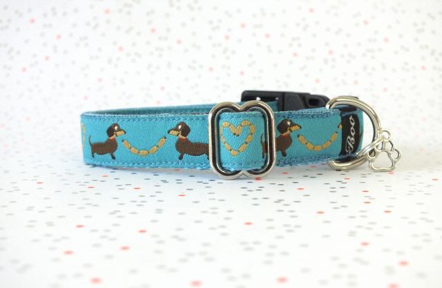 Liebe Züchter und zukünftige Welpen Eltern hier findest du leichte, kleine Welpen Halsbänder aus Gurtband in 1,5 cm Breite, mit unterschiedlichen, niedlichen und teilweise zuckersüßen detailverliebten Webband Motiven. Boo's Welpen Halsbänder Minni sind von mir ganz auf kleirassige Welpen zugeschnitten und eignen sich perfekt als erstes Halsband zum Auszug/ Einzug ins neue Zuhause. Der Halsumfang lässt sich durch einen Metall Schieber größenverstellen und reicht von ca. 16-25 cm oder ca. 17- 30 cm. Ein schwarzer Klickverschluss, leicht gewölbt, sorgt so für einen guten Sitz am Hals der Mini Lakritze-Nase. Der Anhänger am D-Ring ist nur Tüddelkrams fürs Foto und könnte anders ausfallen. Bei Nichtgefallen kann er ganz leicht von dir abgemacht werden. Viele Halsbänder sind Einzelstücke deshalb ist die Bestellmenge je Halsband Minni immer nur 1 x !