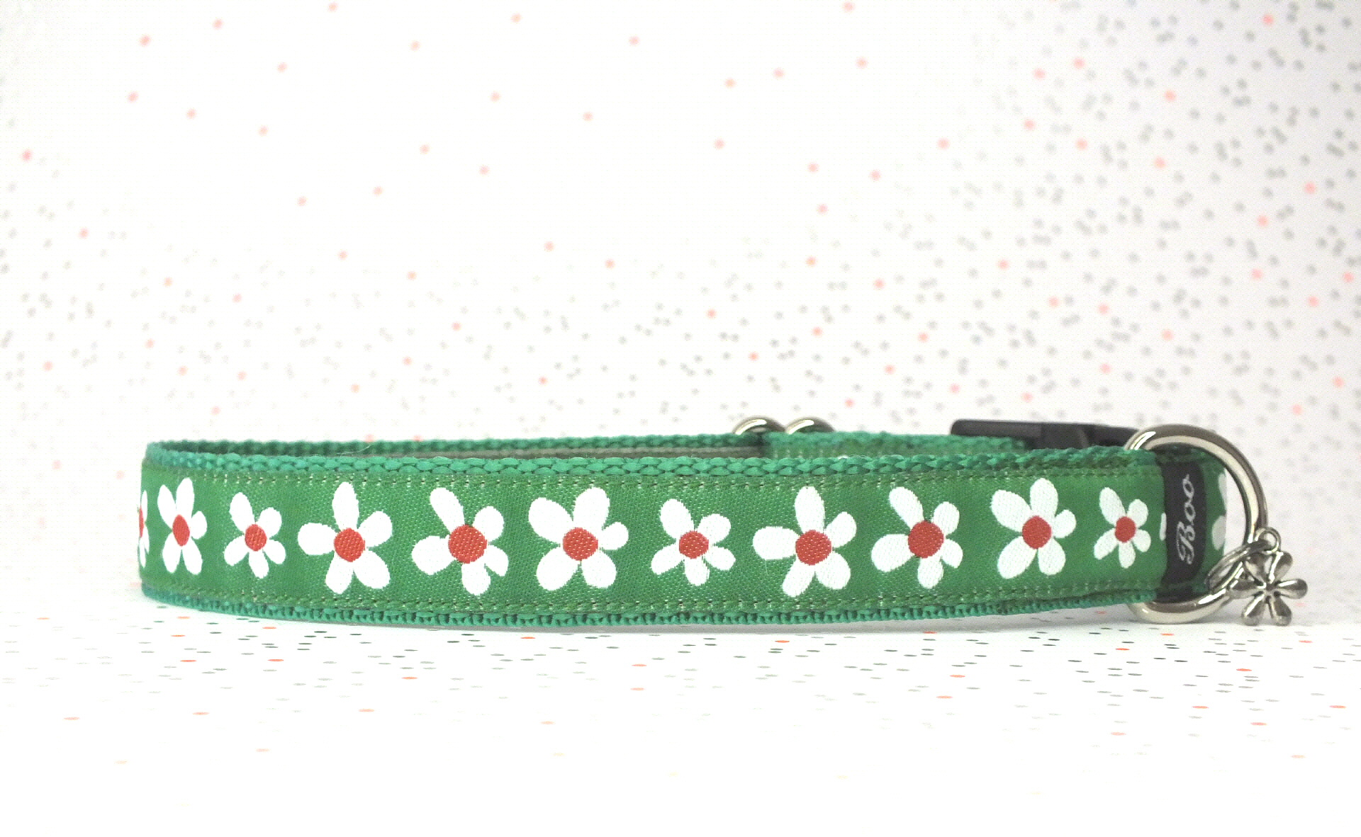 Das Halsband hat eine aufgenähte Webbordüre und eine samtig weiche Unterfütterung. Durch einen Metall Schieber ist es stufenlos größenverstellbar ohne am Hals zu verrutschen. Leicht gewölbt sorgt ein schwarzer Klickverschluss für einen guten Sitz am Hundehals. Der kleine Anhänger ist nur Tüddelkrams fürs Foto und könnte anders ausfallen. Das Material ist waschbar bis 30 Grad. Meine Empfehlung für dich ist Handwäsche um die tollen Farben und das Material zu schonen.