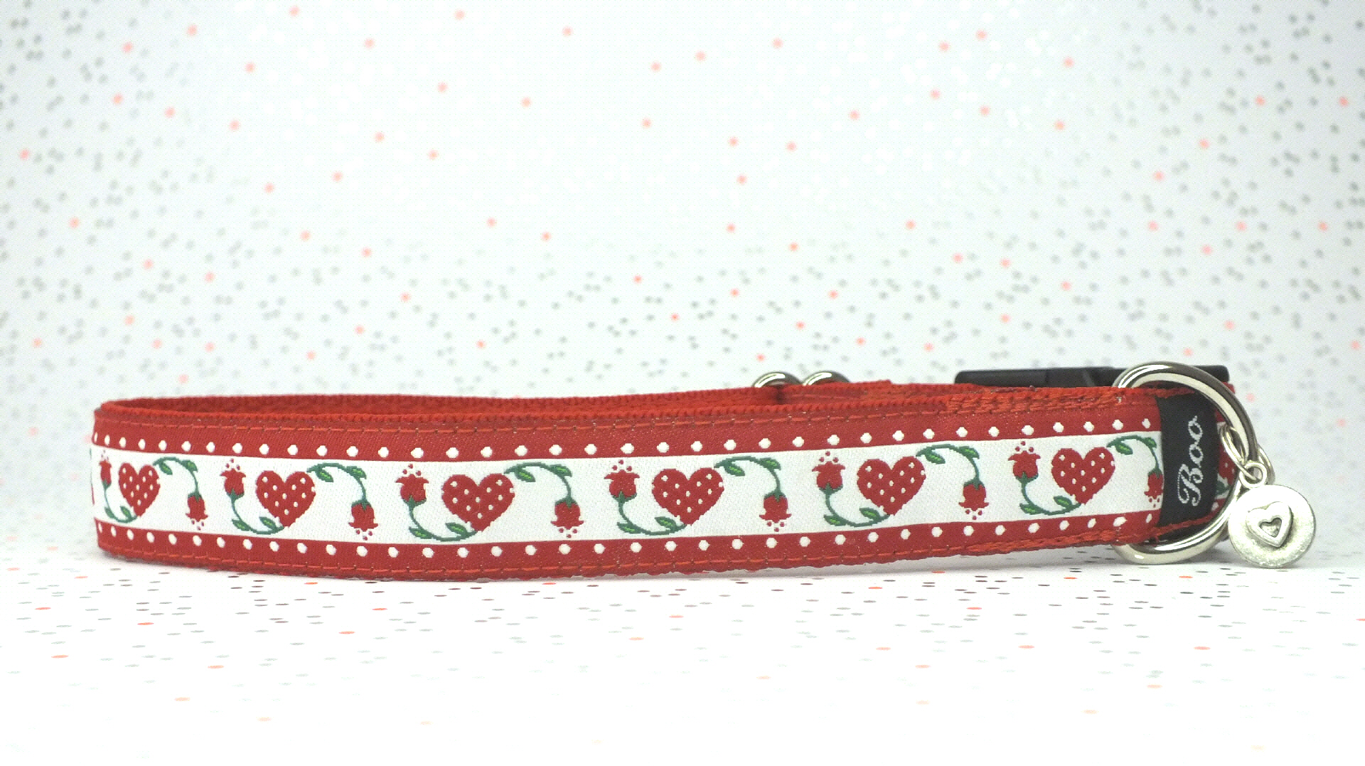 Das Halsband hat eine aufgenähte Webbordüre und eine samtig weiche Unterfütterung. Durch einen Metall Schieber ist es stufenlos größenverstellbar ohne am Hals zu verrutschen. Leicht gewölbt sorgt ein schwarzer Klickverschluss für einen guten Sitz am Hundehals. Der kleine Anhänger ist nur Tüddelkrams fürs Foto und könnte anders ausfallen. Das Material ist waschbar bis 30 Grad. Meine Empfehlung für dich ist Handwäsche um die tollen Farben und das Material zu schonen.