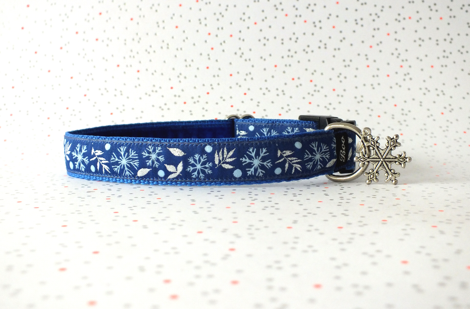 Das Halsband hat eine aufgenähte Webbordüre und eine samtig weiche Unterfütterung. Durch einen Metall Schieber ist es stufenlos größenverstellbar ohne am Hals zu verrutschen. Leicht gewölbt sorgt ein schwarzer Klickverschluss für einen guten Sitz am Hundehals. Der kleine Anhänger ist nur Tüddelkrams fürs Foto und könnte anders ausfallen. Das Material ist waschbar bis 30 Grad. Meine Empfehlung für dich ist Handwäsche um die tollen Farben und das Material zu schonen.