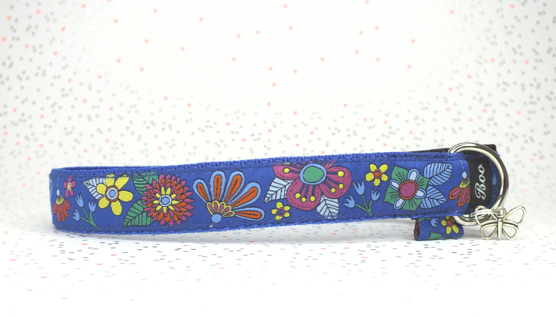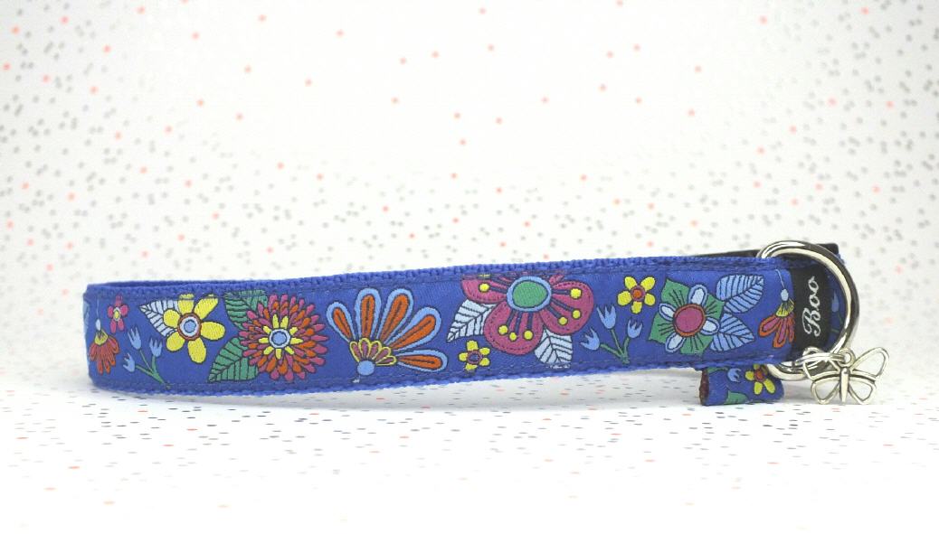 Das Halsband hat eine aufgenähte Webbordüre und eine samtig weiche Unterfütterung. Durch einen Metall Schieber ist es stufenlos größenverstellbar ohne am Hals zu verrutschen. Leicht gewölbt sorgt ein schwarzer Klickverschluss für einen guten Sitz am Hundehals. Der kleine Anhänger ist nur Tüddelkrams fürs Foto und könnte anders ausfallen. Das Material ist waschbar bis 30 Grad. Meine Empfehlung für dich ist Handwäsche um die tollen Farben und das Material zu schonen.
