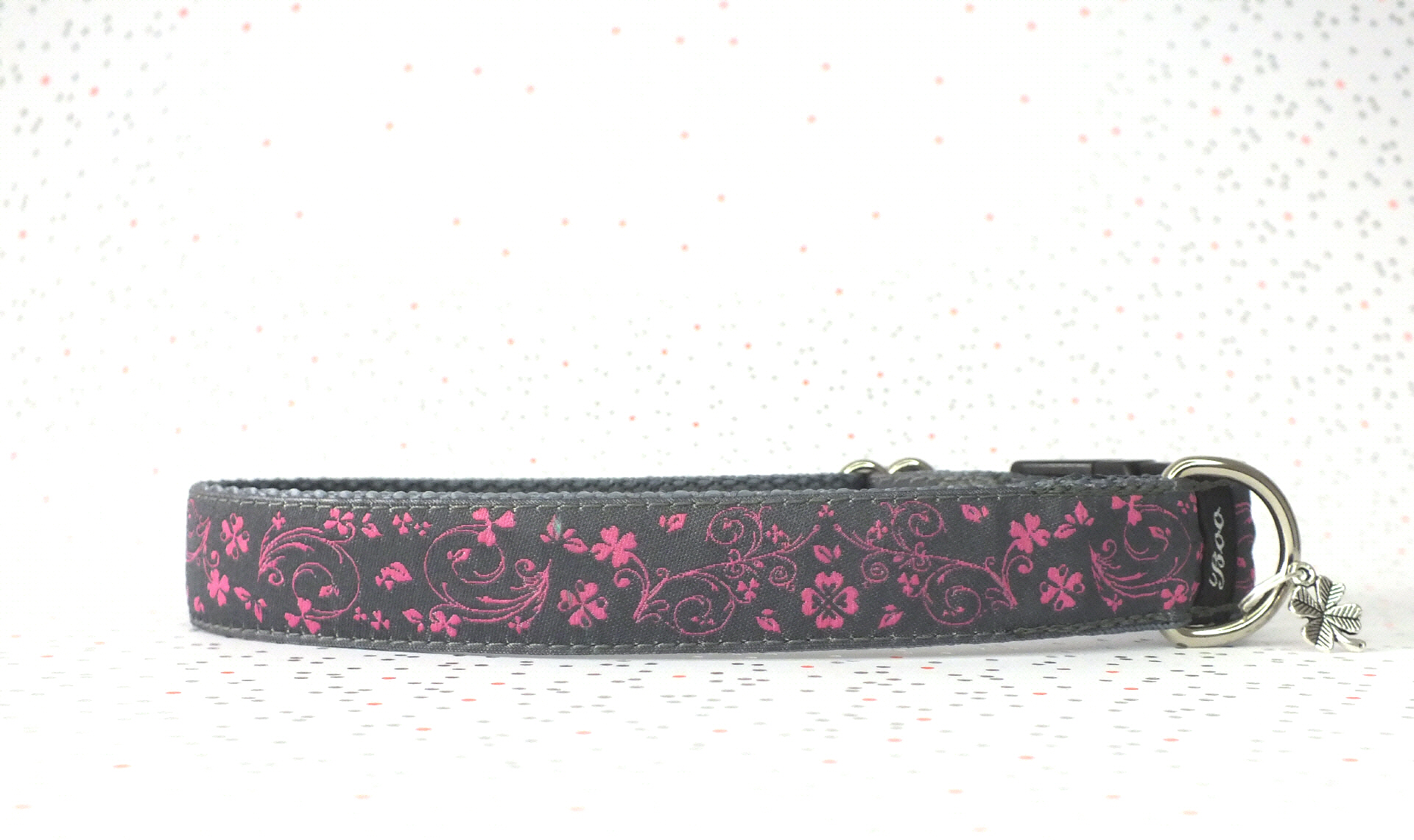 Das Halsband hat eine aufgenähte Webbordüre und eine samtig weiche Unterfütterung. Durch einen Metall Schieber ist es stufenlos größenverstellbar ohne am Hals zu verrutschen. Leicht gewölbt sorgt ein schwarzer Klickverschluss für einen guten Sitz am Hundehals. Der kleine Anhänger ist nur Tüddelkrams fürs Foto und könnte anders ausfallen. Das Material ist waschbar bis 30 Grad. Meine Empfehlung für dich ist Handwäsche um die tollen Farben und das Material zu schonen.