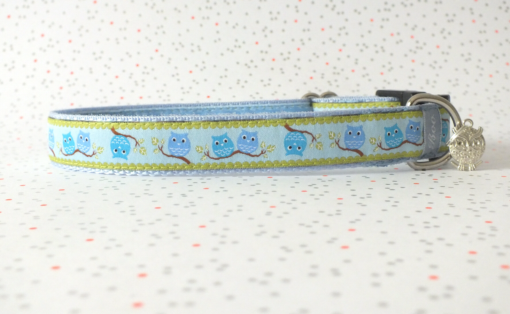Das Halsband hat eine aufgenähte Webbordüre und eine samtig weiche Unterfütterung. Durch einen Metall Schieber ist es stufenlos größenverstellbar ohne am Hals zu verrutschen. Leicht gewölbt sorgt ein schwarzer Klickverschluss für einen guten Sitz am Hundehals. Der kleine Anhänger ist nur Tüddelkrams fürs Foto und könnte anders ausfallen. Das Material ist waschbar bis 30 Grad. Meine Empfehlung für dich ist Handwäsche um die tollen Farben und das Material zu schonen.
