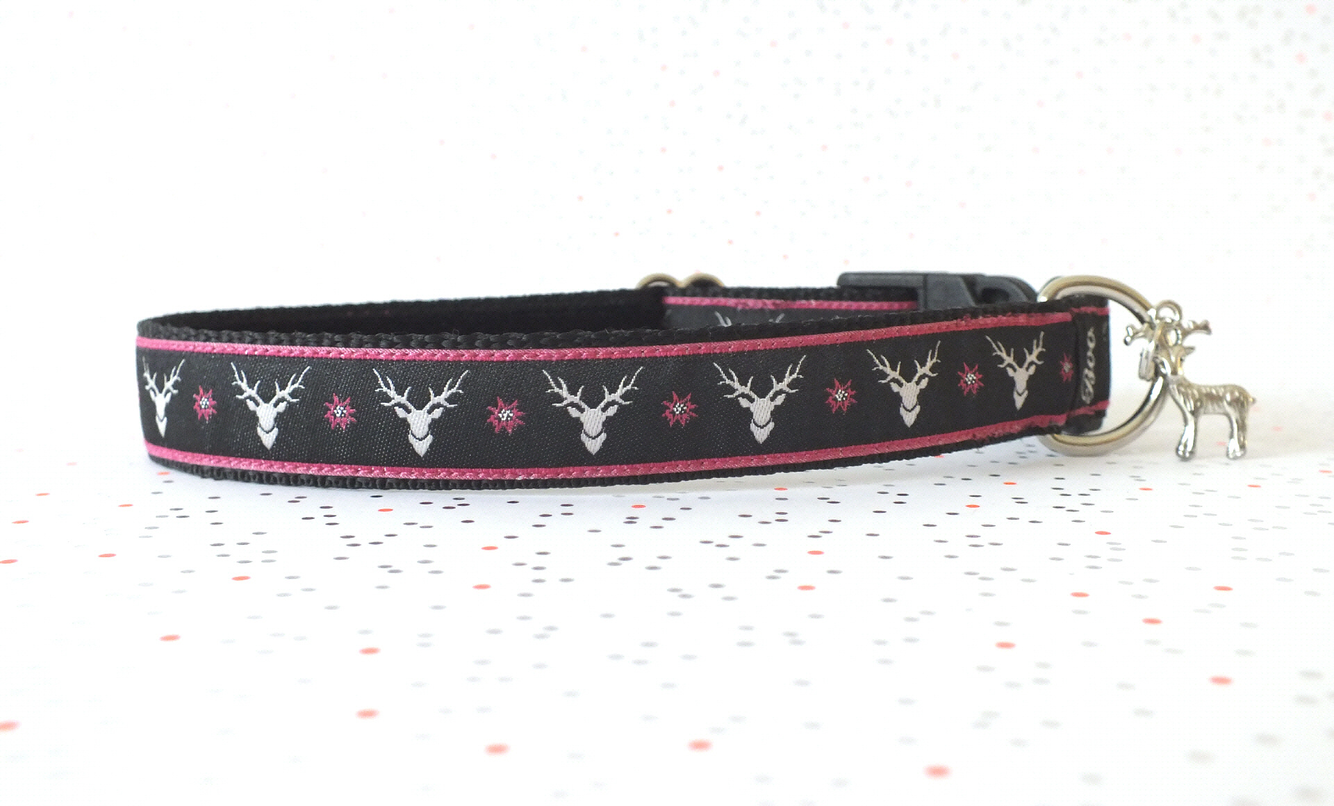 Das Halsband hat eine aufgenähte Webbordüre und eine samtig weiche Unterfütterung. Durch einen Metall Schieber ist es stufenlos größenverstellbar ohne am Hals zu verrutschen. Leicht gewölbt sorgt ein schwarzer Klickverschluss für einen guten Sitz am Hundehals. Der kleine Anhänger ist nur Tüddelkrams fürs Foto und könnte anders ausfallen. Das Material ist waschbar bis 30 Grad. Meine Empfehlung für dich ist Handwäsche um die tollen Farben und das Material zu schonen.