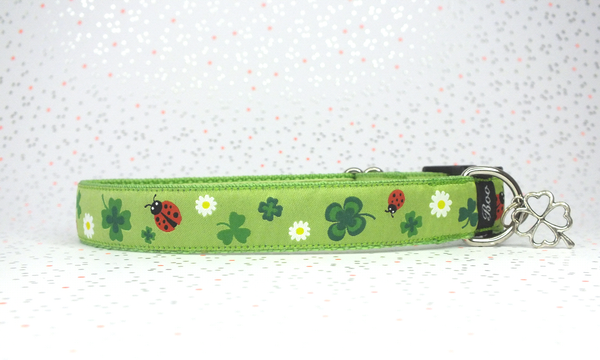 Das Halsband hat eine aufgenähte Webbordüre und eine samtig weiche Unterfütterung. Durch einen Metall Schieber ist es stufenlos größenverstellbar ohne am Hals zu verrutschen. Leicht gewölbt sorgt ein schwarzer Klickverschluss für einen guten Sitz am Hundehals. Der kleine Anhänger ist nur Tüddelkrams fürs Foto und könnte anders ausfallen. Das Material ist waschbar bis 30 Grad. Meine Empfehlung für dich ist Handwäsche um die tollen Farben und das Material zu schonen.