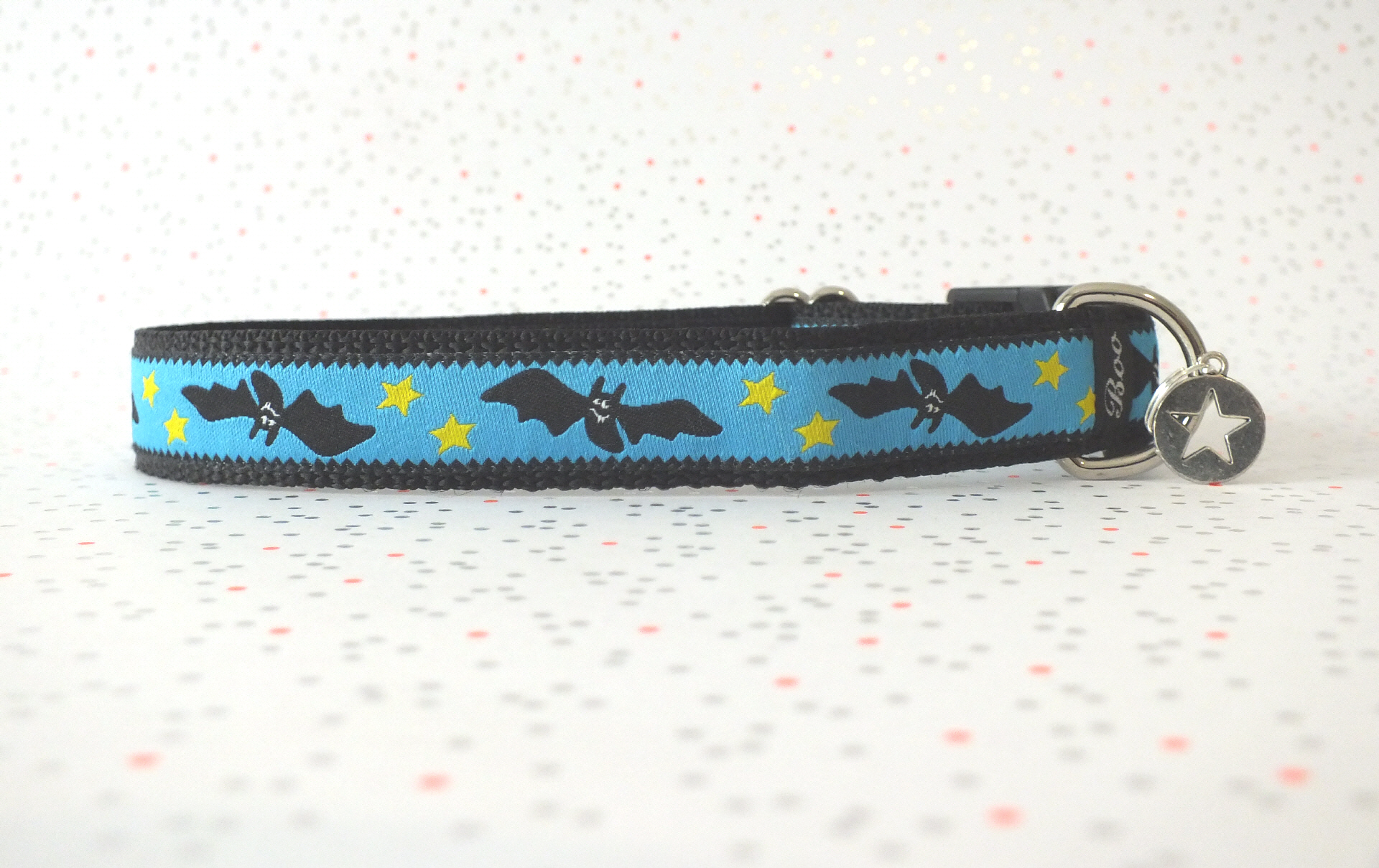 Das Halsband hat eine aufgenähte Webbordüre und eine samtig weiche Unterfütterung. Durch einen Metall Schieber ist es stufenlos größenverstellbar ohne am Hals zu verrutschen. Leicht gewölbt sorgt ein schwarzer Klickverschluss für einen guten Sitz am Hundehals. Der kleine Anhänger ist nur Tüddelkrams fürs Foto und könnte anders ausfallen. Das Material ist waschbar bis 30 Grad. Meine Empfehlung für dich ist Handwäsche um die tollen Farben und das Material zu schonen.