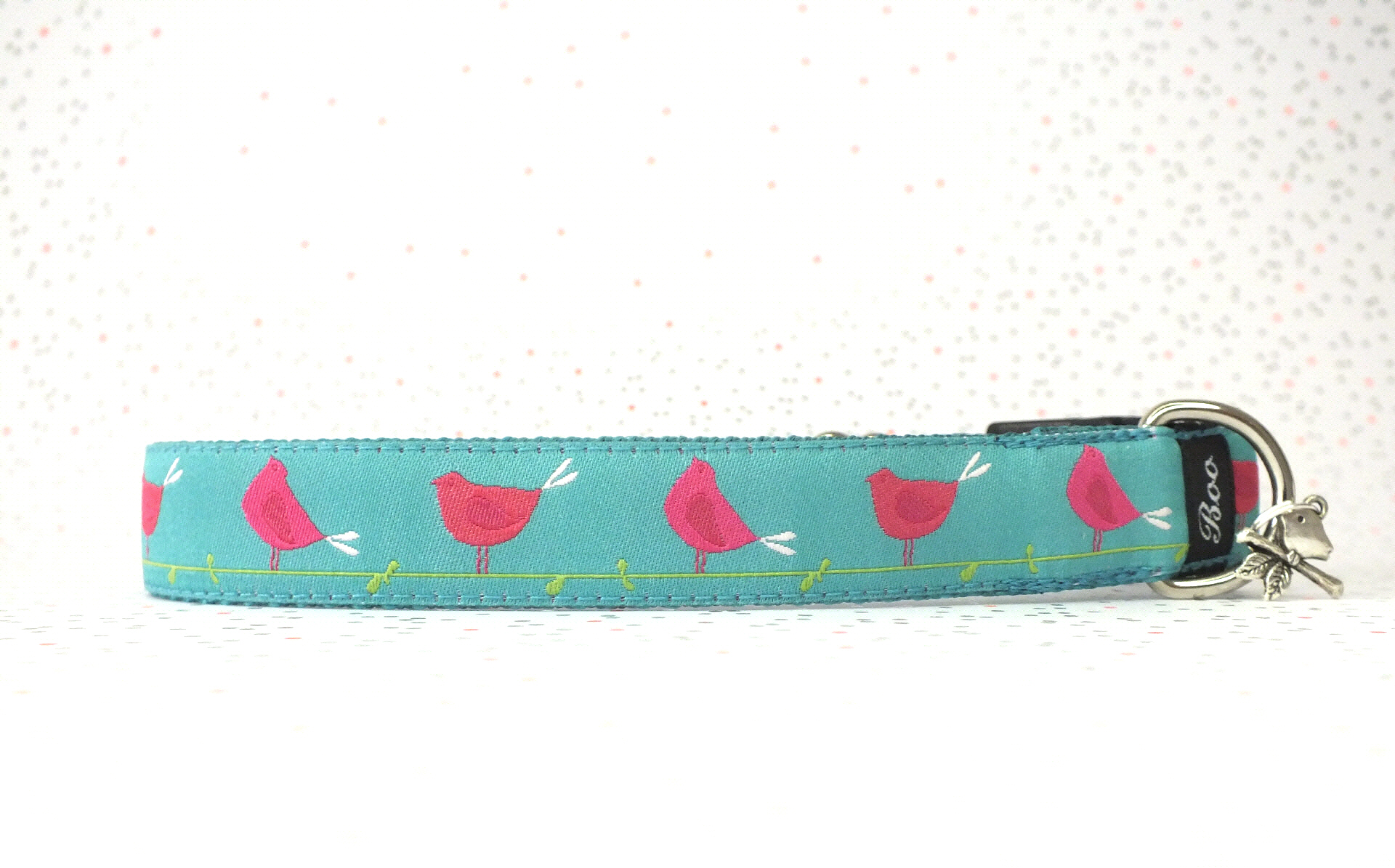 Das Halsband hat eine aufgenähte Webbordüre und eine samtig weiche Unterfütterung. Durch einen Metall Schieber ist es stufenlos größenverstellbar ohne am Hals zu verrutschen. Leicht gewölbt sorgt ein schwarzer Klickverschluss für einen guten Sitz am Hundehals. Der kleine Anhänger ist nur Tüddelkrams fürs Foto und könnte anders ausfallen. Das Material ist waschbar bis 30 Grad. Meine Empfehlung für dich ist Handwäsche um die tollen Farben und das Material zu schonen.
