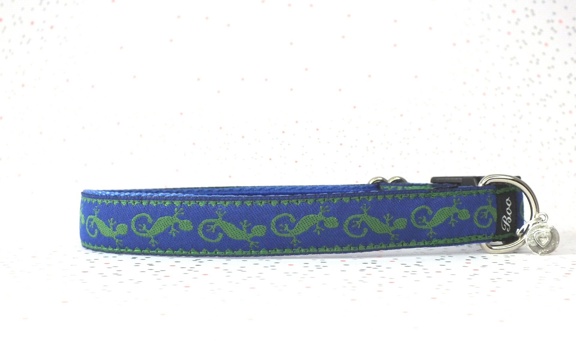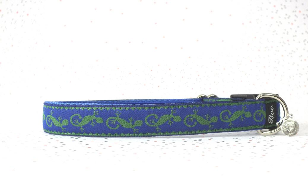 Das Halsband hat eine aufgenähte Webbordüre und eine samtig weiche Unterfütterung. Durch einen Metall Schieber ist es stufenlos größenverstellbar ohne am Hals zu verrutschen. Leicht gewölbt sorgt ein schwarzer Klickverschluss für einen guten Sitz am Hundehals. Der kleine Anhänger ist nur Tüddelkrams fürs Foto und könnte anders ausfallen. Das Material ist waschbar bis 30 Grad. Meine Empfehlung für dich ist Handwäsche um die tollen Farben und das Material zu schonen.
