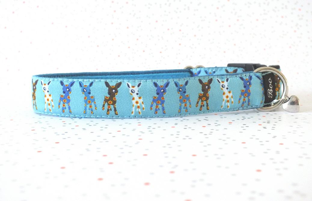 Das Halsband hat eine aufgenähte Webbordüre und eine samtig weiche Unterfütterung. Durch einen Metall Schieber ist es stufenlos größenverstellbar ohne am Hals zu verrutschen. Leicht gewölbt sorgt ein schwarzer Klickverschluss für einen guten Sitz am Hundehals. Der kleine Anhänger ist nur Tüddelkrams fürs Foto und könnte anders ausfallen. Das Material ist waschbar bis 30 Grad. Meine Empfehlung für dich ist Handwäsche um die tollen Farben und das Material zu schonen.