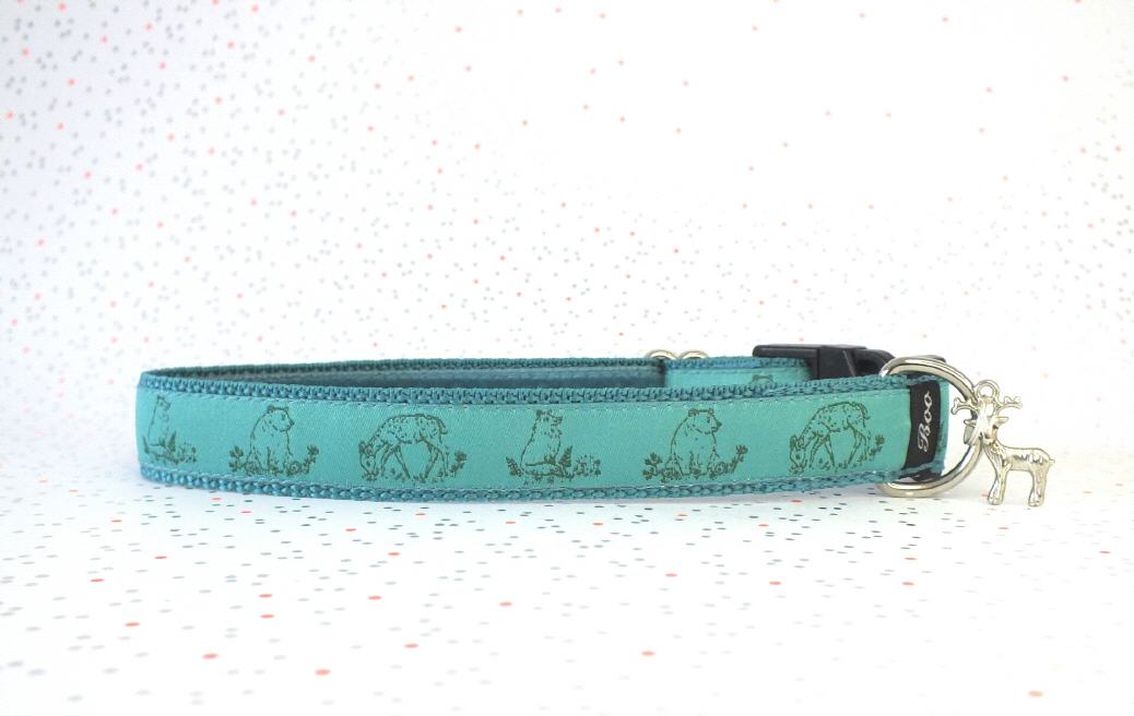 Das Halsband hat eine aufgenähte Webbordüre und eine samtig weiche Unterfütterung. Durch einen Metall Schieber ist es stufenlos größenverstellbar ohne am Hals zu verrutschen. Leicht gewölbt sorgt ein schwarzer Klickverschluss für einen guten Sitz am Hundehals. Der kleine Anhänger ist nur Tüddelkrams fürs Foto und könnte anders ausfallen. Das Material ist waschbar bis 30 Grad. Meine Empfehlung für dich ist Handwäsche um die tollen Farben und das Material zu schonen.