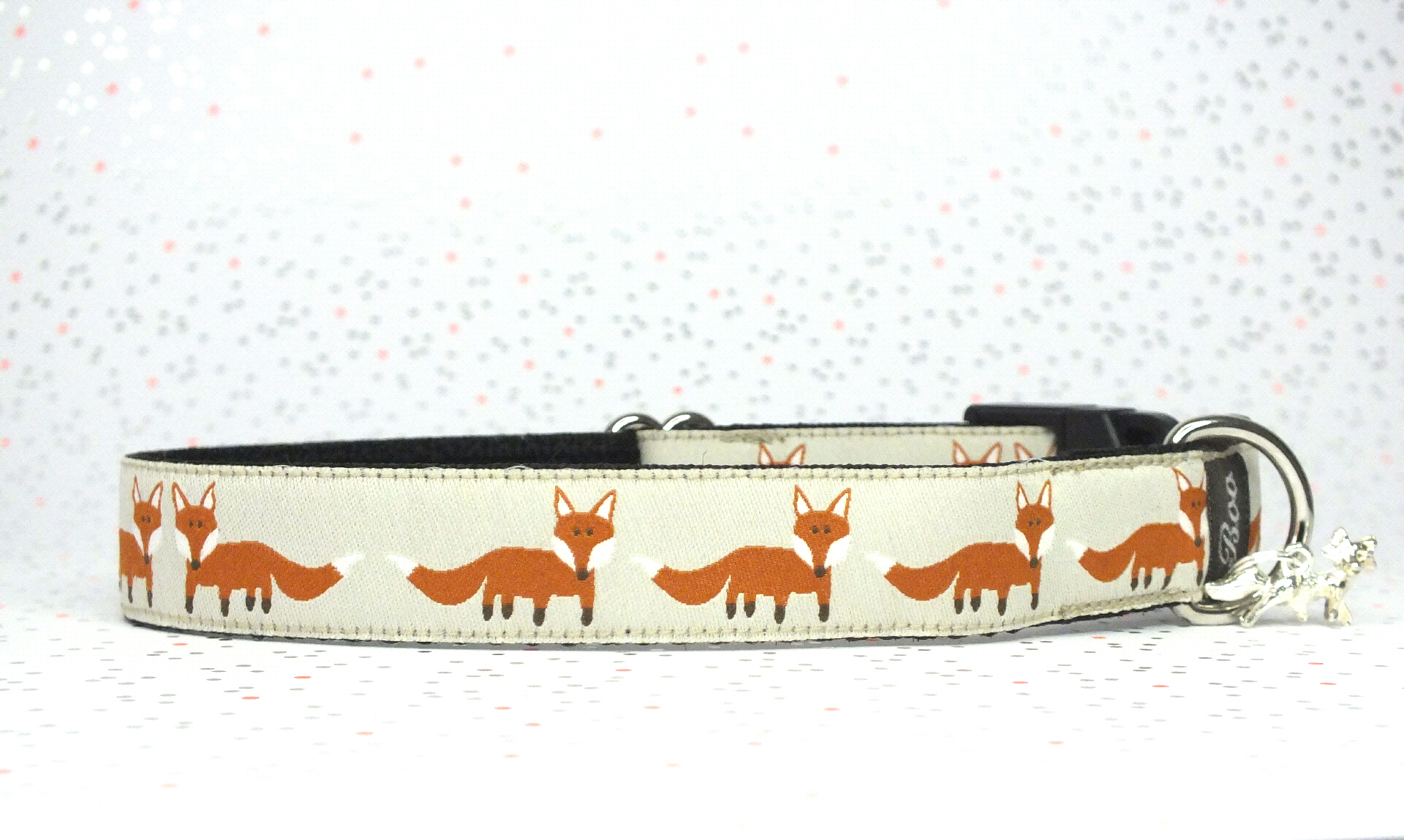 Das Halsband hat eine aufgenähte Webbordüre und eine samtig weiche Unterfütterung. Durch einen Metall Schieber ist es stufenlos größenverstellbar ohne am Hals zu verrutschen. Leicht gewölbt sorgt ein schwarzer Klickverschluss für einen guten Sitz am Hundehals. Der kleine Anhänger ist nur Tüddelkrams fürs Foto und könnte anders ausfallen. Das Material ist waschbar bis 30 Grad. Meine Empfehlung für dich ist Handwäsche um die tollen Farben und das Material zu schonen.