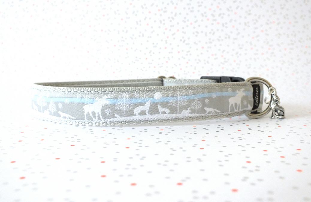 Das Halsband hat eine aufgenähte Webbordüre und eine samtig weiche Unterfütterung. Durch einen Metall Schieber ist es stufenlos größenverstellbar ohne am Hals zu verrutschen. Leicht gewölbt sorgt ein schwarzer Klickverschluss für einen guten Sitz am Hundehals. Der kleine Anhänger ist nur Tüddelkrams fürs Foto und könnte anders ausfallen. Das Material ist waschbar bis 30 Grad. Meine Empfehlung für dich ist Handwäsche um die tollen Farben und das Material zu schonen.