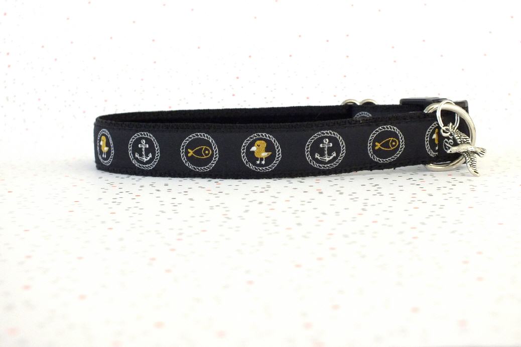 Das Halsband hat eine aufgenähte Webbordüre und eine samtig weiche Unterfütterung. Durch einen Metall Schieber ist es stufenlos größenverstellbar ohne am Hals zu verrutschen. Leicht gewölbt sorgt ein schwarzer Klickverschluss für einen guten Sitz am Hundehals. Der kleine Anhänger ist nur Tüddelkrams fürs Foto und könnte anders ausfallen. Das Material ist waschbar bis 30 Grad. Meine Empfehlung für dich ist Handwäsche um die tollen Farben und das Material zu schonen.