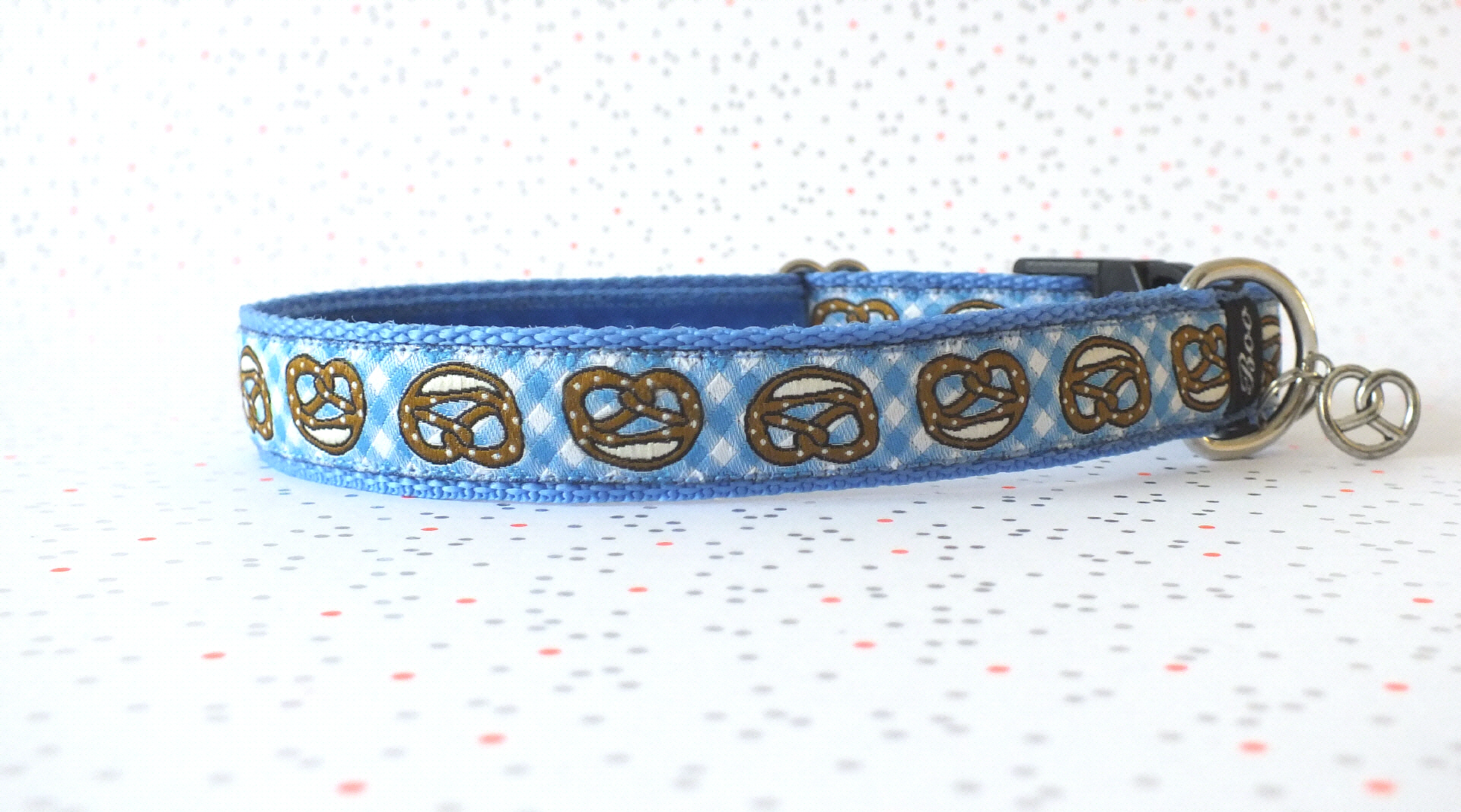 Das Halsband hat eine aufgenähte Webbordüre und eine samtig weiche Unterfütterung. Durch einen Metall Schieber ist es stufenlos größenverstellbar ohne am Hals zu verrutschen. Leicht gewölbt sorgt ein schwarzer Klickverschluss für einen guten Sitz am Hundehals. Der kleine Anhänger ist nur Tüddelkrams fürs Foto und könnte anders ausfallen. Das Material ist waschbar bis 30 Grad. Meine Empfehlung für dich ist Handwäsche um die tollen Farben und das Material zu schonen.