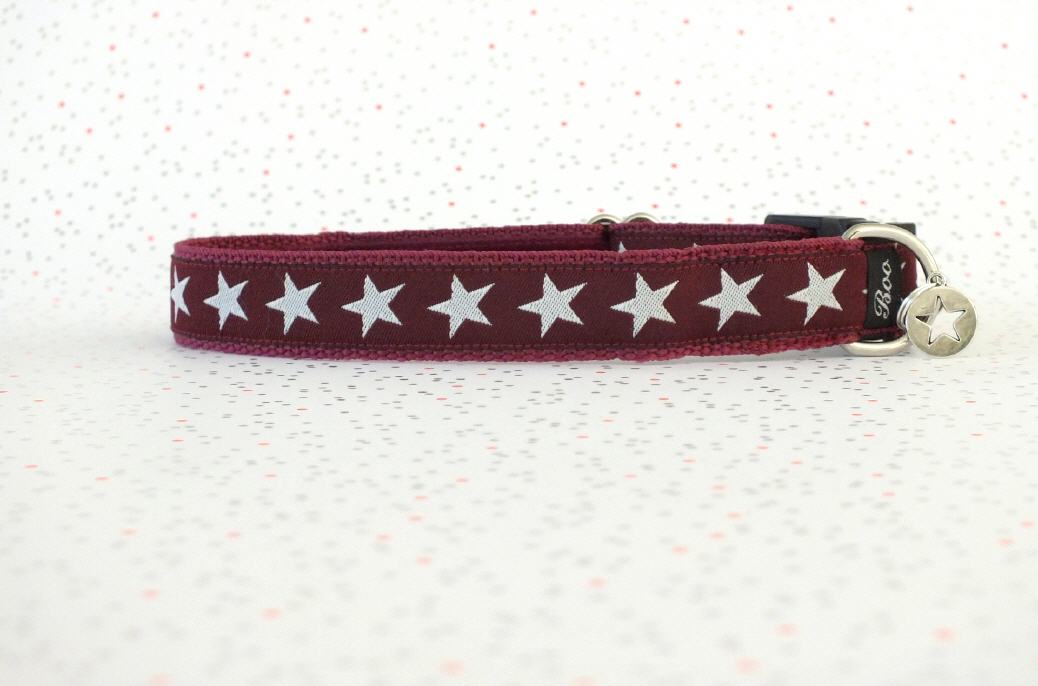 Das Halsband hat eine aufgenähte Webbordüre und eine samtig weiche Unterfütterung. Durch einen Metall Schieber ist es stufenlos größenverstellbar ohne am Hals zu verrutschen. Leicht gewölbt sorgt ein schwarzer Klickverschluss für einen guten Sitz am Hundehals. Der kleine Anhänger ist nur Tüddelkrams fürs Foto und könnte anders ausfallen. Das Material ist waschbar bis 30 Grad. Meine Empfehlung für dich ist Handwäsche um die tollen Farben und das Material zu schonen.