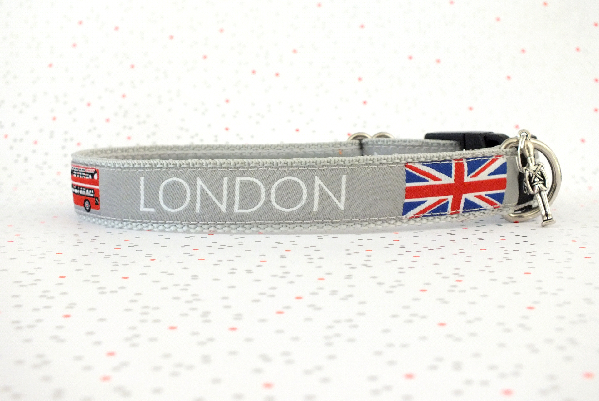 Das Halsband hat eine aufgenähte Webbordüre und eine samtig weiche Unterfütterung. Durch einen Metall Schieber ist es stufenlos größenverstellbar ohne am Hals zu verrutschen. Leicht gewölbt sorgt ein schwarzer Klickverschluss für einen guten Sitz am Hundehals. Der kleine Anhänger ist nur Tüddelkrams fürs Foto und könnte anders ausfallen. Das Material ist waschbar bis 30 Grad. Meine Empfehlung für dich ist Handwäsche um die tollen Farben und das Material zu schonen.
