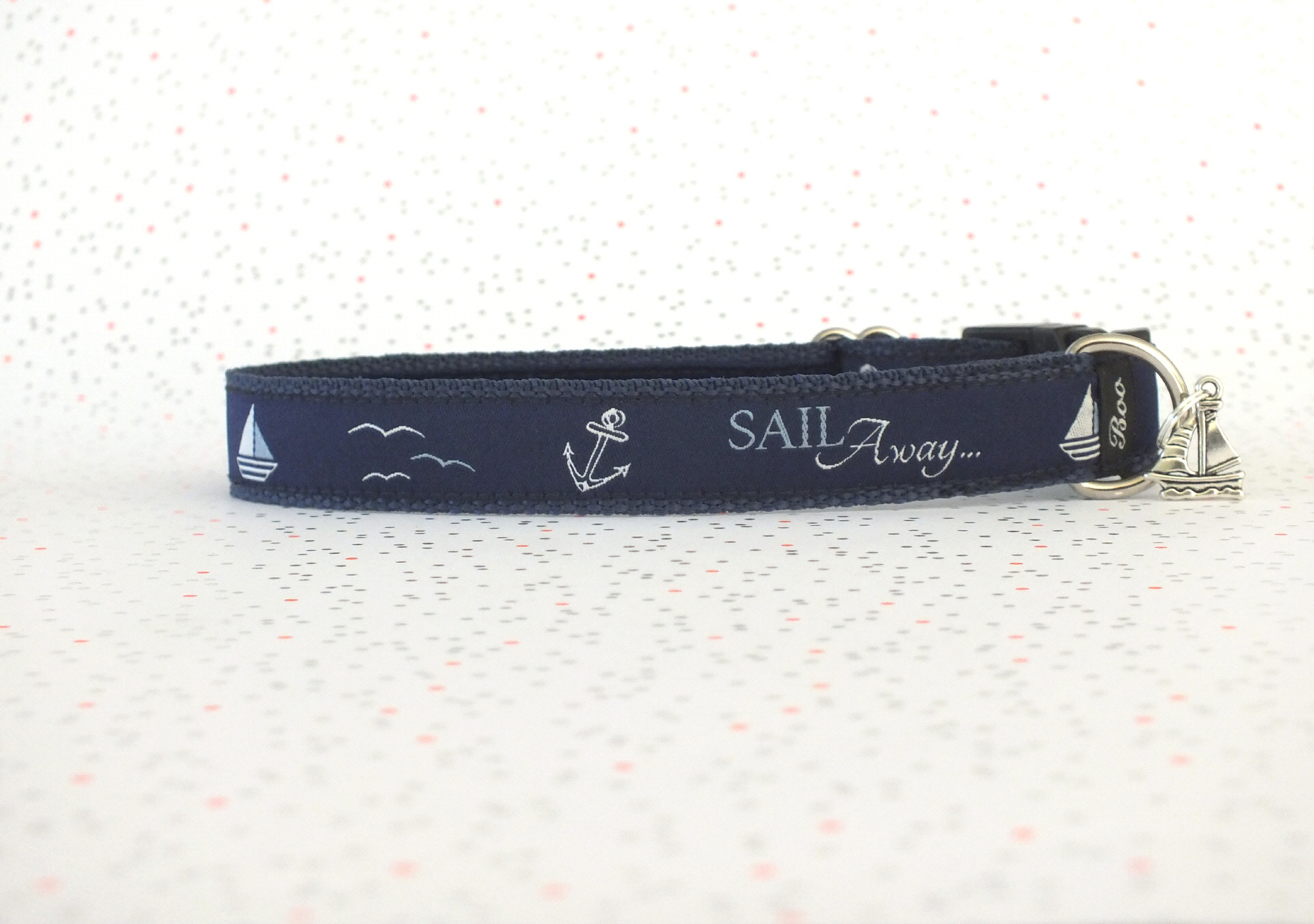 Das Halsband hat eine aufgenähte Webbordüre und eine samtig weiche Unterfütterung. Durch einen Metall Schieber ist es stufenlos größenverstellbar ohne am Hals zu verrutschen. Leicht gewölbt sorgt ein schwarzer Klickverschluss für einen guten Sitz am Hundehals. Der kleine Anhänger ist nur Tüddelkrams fürs Foto und könnte anders ausfallen. Das Material ist waschbar bis 30 Grad. Meine Empfehlung für dich ist Handwäsche um die tollen Farben und das Material zu schonen.
