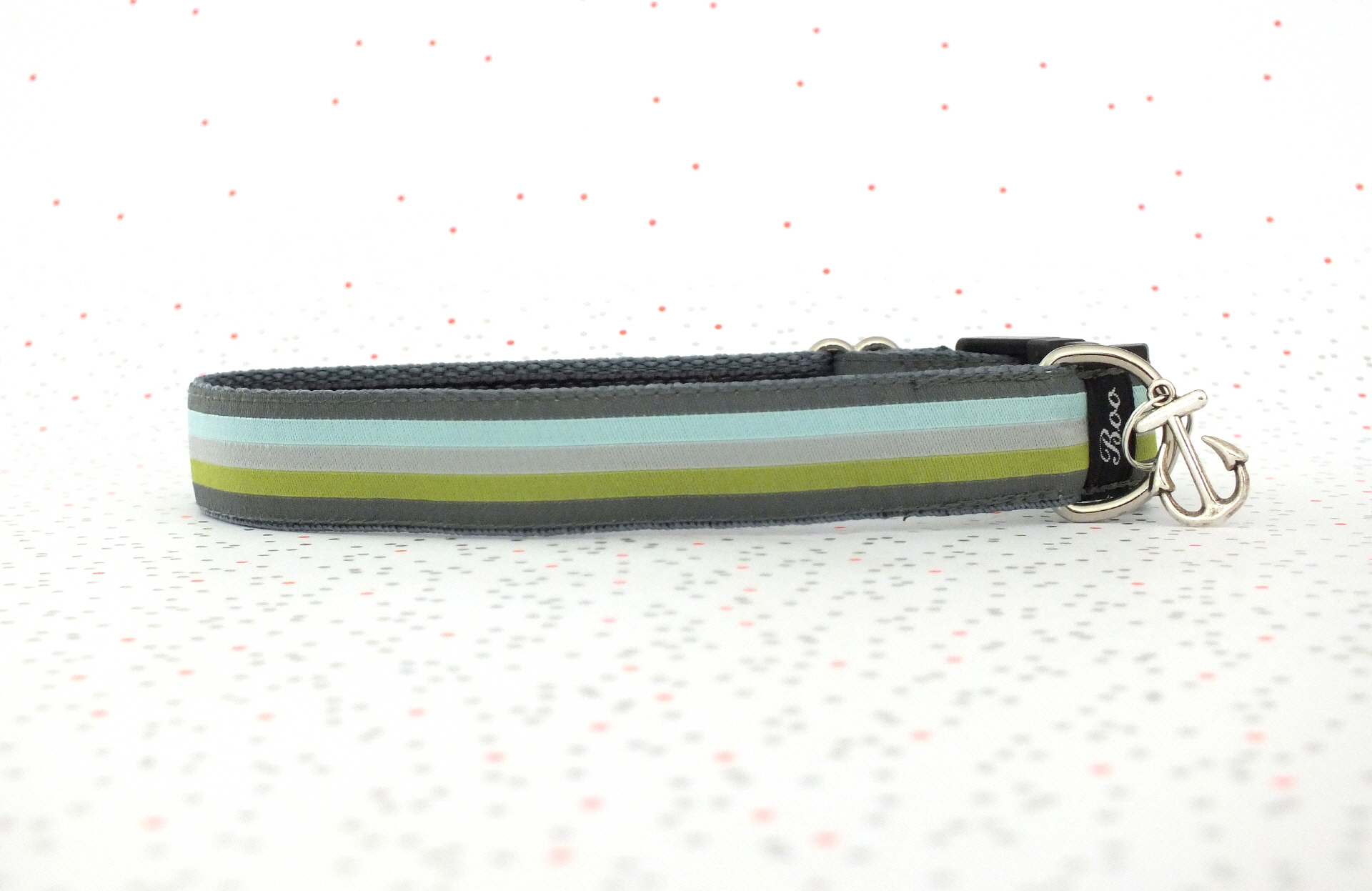Das Halsband hat eine aufgenähte Webbordüre und eine samtig weiche Unterfütterung. Durch einen Metall Schieber ist es stufenlos größenverstellbar ohne am Hals zu verrutschen. Leicht gewölbt sorgt ein schwarzer Klickverschluss für einen guten Sitz am Hundehals. Der kleine Anhänger ist nur Tüddelkrams fürs Foto und könnte anders ausfallen. Das Material ist waschbar bis 30 Grad. Meine Empfehlung für dich ist Handwäsche um die tollen Farben und das Material zu schonen.
