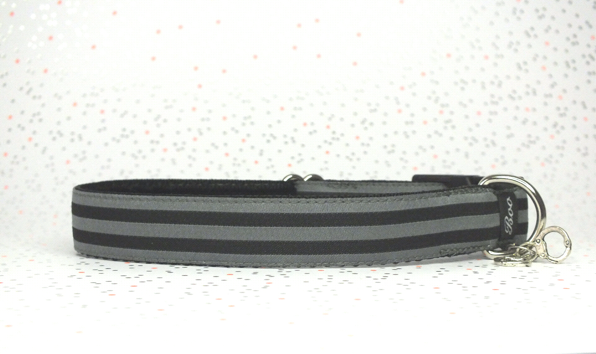 Das Halsband hat eine aufgenähte Webbordüre und eine samtig weiche Unterfütterung. Durch einen Metall Schieber ist es stufenlos größenverstellbar ohne am Hals zu verrutschen. Leicht gewölbt sorgt ein schwarzer Klickverschluss für einen guten Sitz am Hundehals. Der kleine Anhänger ist nur Tüddelkrams fürs Foto und könnte anders ausfallen. Das Material ist waschbar bis 30 Grad. Meine Empfehlung für dich ist Handwäsche um die tollen Farben und das Material zu schonen.