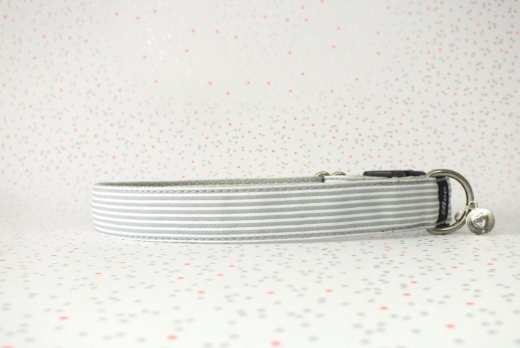 Das Halsband hat eine aufgenähte Webbordüre und eine samtig weiche Unterfütterung. Durch einen Metall Schieber ist es stufenlos größenverstellbar ohne am Hals zu verrutschen. Leicht gewölbt sorgt ein schwarzer Klickverschluss für einen guten Sitz am Hundehals. Der kleine Anhänger ist nur Tüddelkrams fürs Foto und könnte anders ausfallen. Das Material ist waschbar bis 30 Grad. Meine Empfehlung für dich ist Handwäsche um die tollen Farben und das Material zu schonen.
