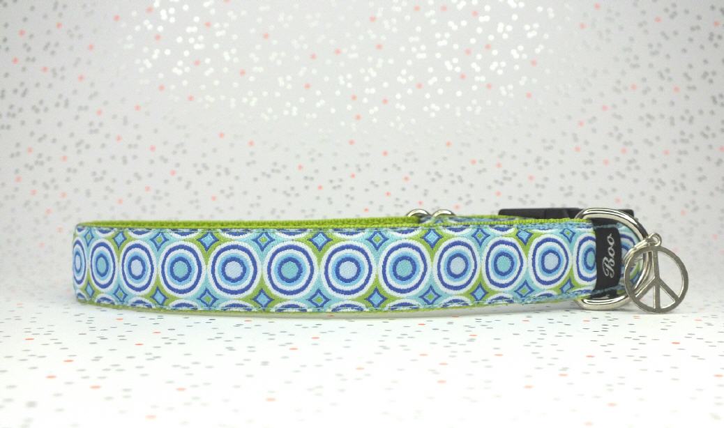 Das Halsband hat eine aufgenähte Webbordüre und eine samtig weiche Unterfütterung. Durch einen Metall Schieber ist es stufenlos größenverstellbar ohne am Hals zu verrutschen. Leicht gewölbt sorgt ein schwarzer Klickverschluss für einen guten Sitz am Hundehals. Der kleine Anhänger ist nur Tüddelkrams fürs Foto und könnte anders ausfallen. Das Material ist waschbar bis 30 Grad. Meine Empfehlung für dich ist Handwäsche um die tollen Farben und das Material zu schonen.