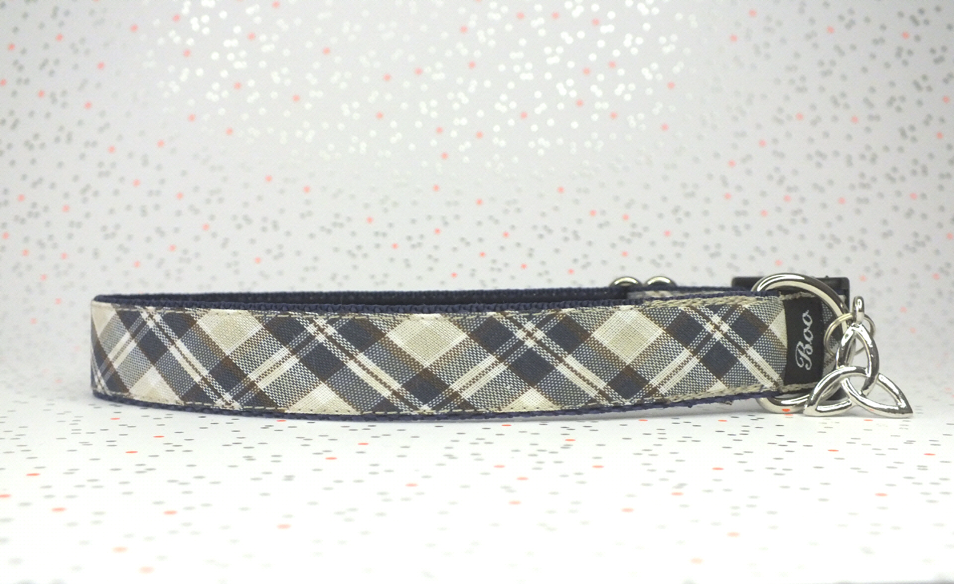 Das Halsband hat eine aufgenähte Webbordüre und eine samtig weiche Unterfütterung. Durch einen Metall Schieber ist es stufenlos größenverstellbar ohne am Hals zu verrutschen. Leicht gewölbt sorgt ein schwarzer Klickverschluss für einen guten Sitz am Hundehals. Der kleine Anhänger ist nur Tüddelkrams fürs Foto und könnte anders ausfallen. Das Material ist waschbar bis 30 Grad. Meine Empfehlung für dich ist Handwäsche um die tollen Farben und das Material zu schonen.