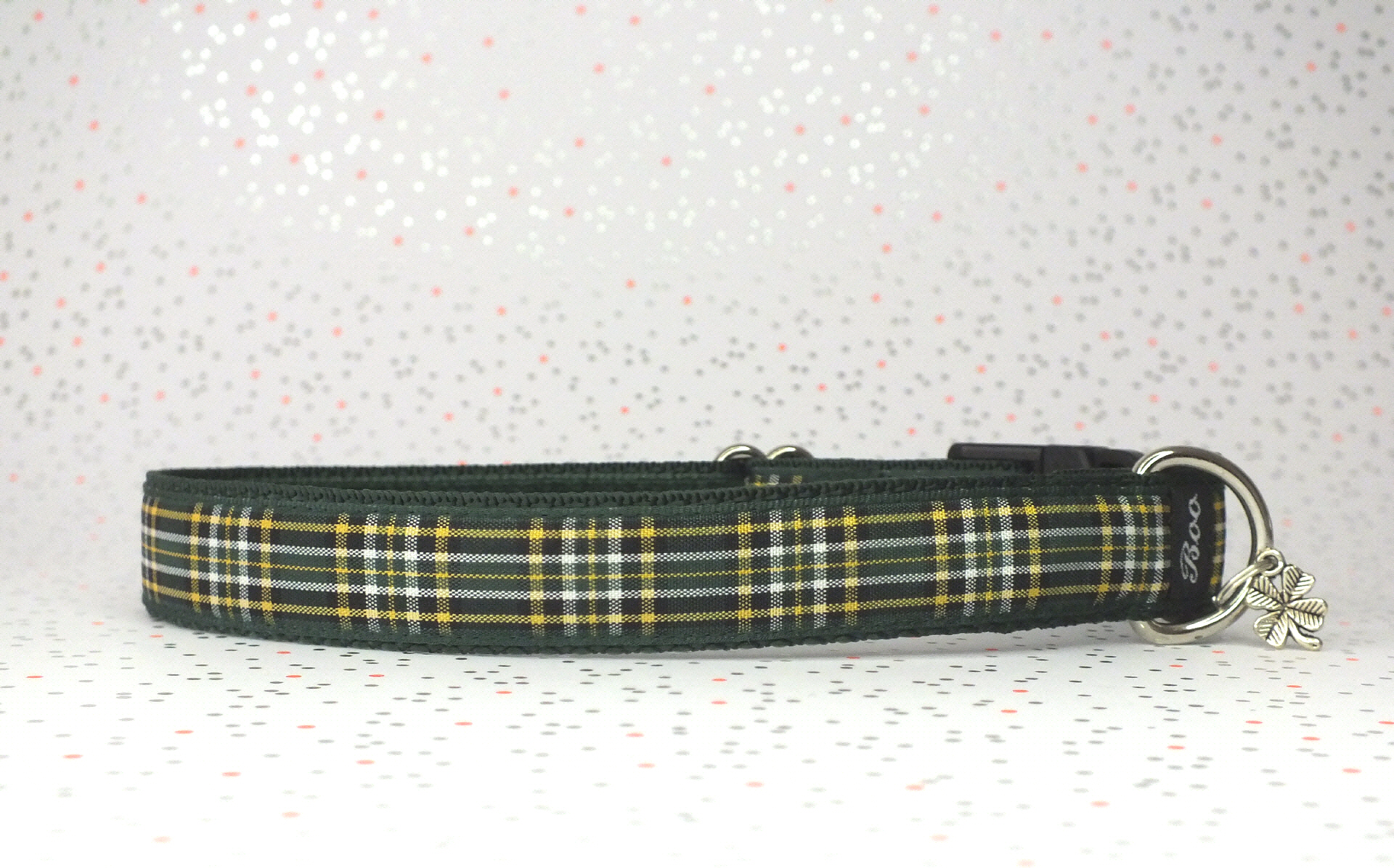 Das Halsband hat eine aufgenähte Webbordüre und eine samtig weiche Unterfütterung. Durch einen Metall Schieber ist es stufenlos größenverstellbar ohne am Hals zu verrutschen. Leicht gewölbt sorgt ein schwarzer Klickverschluss für einen guten Sitz am Hundehals. Der kleine Anhänger ist nur Tüddelkrams fürs Foto und könnte anders ausfallen. Das Material ist waschbar bis 30 Grad. Meine Empfehlung für dich ist Handwäsche um die tollen Farben und das Material zu schonen.