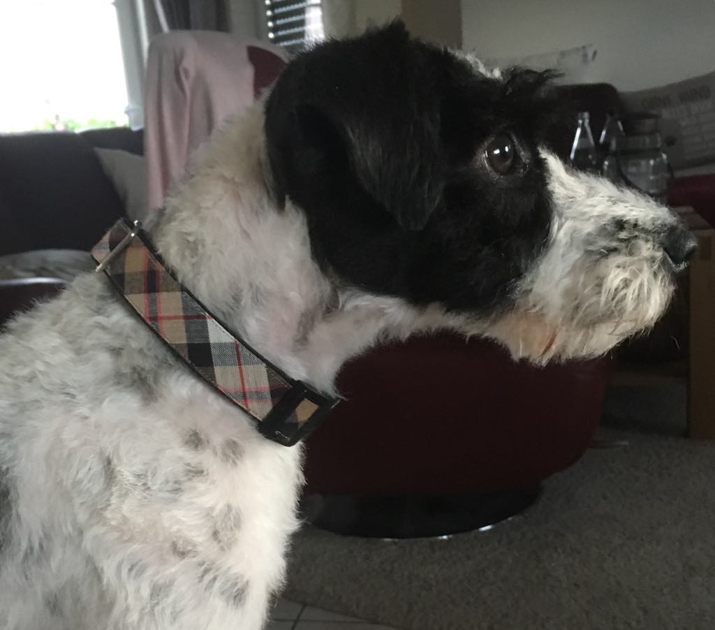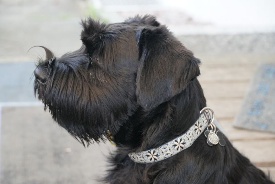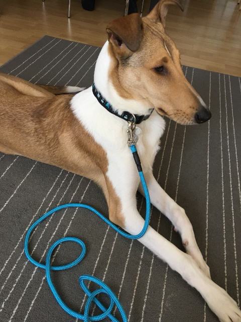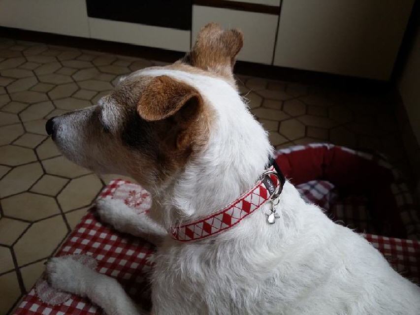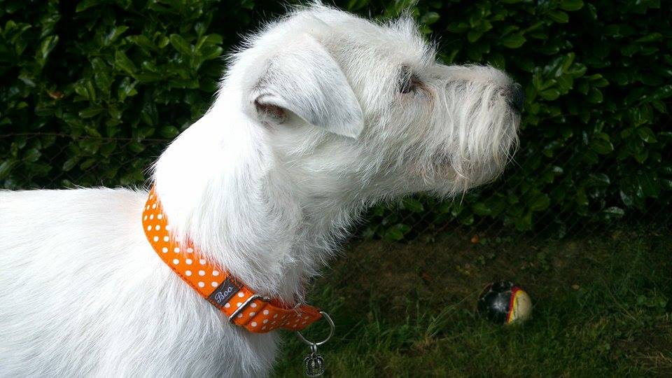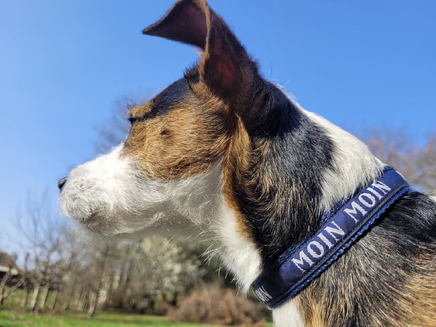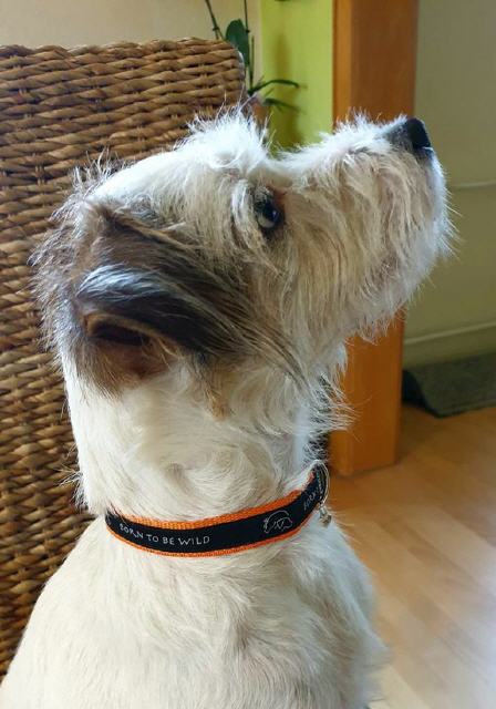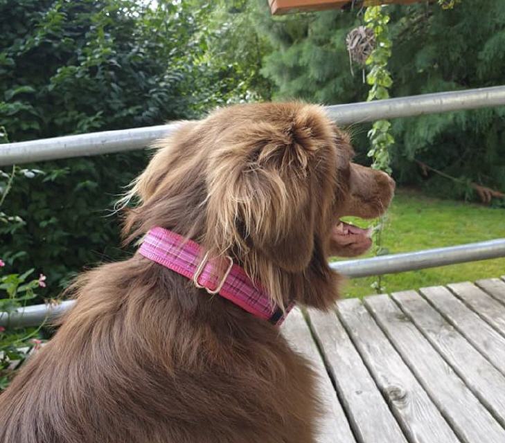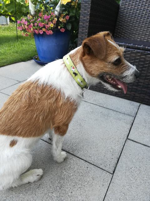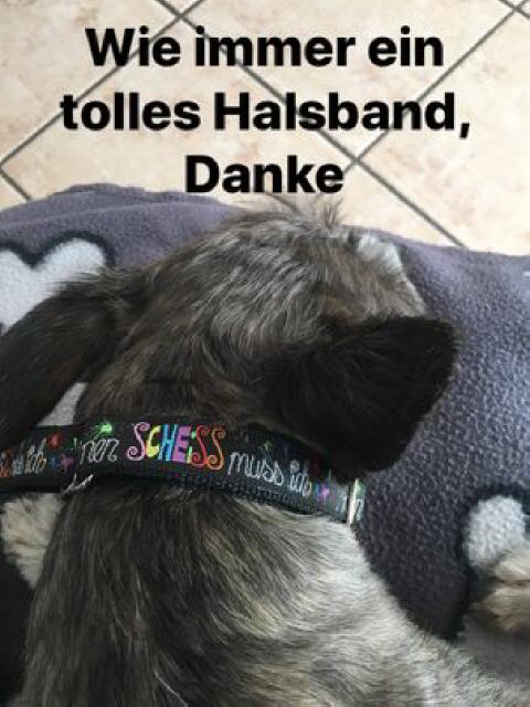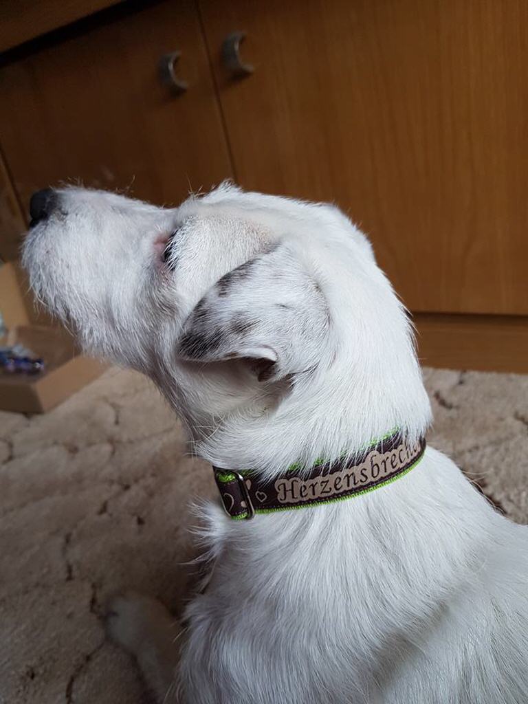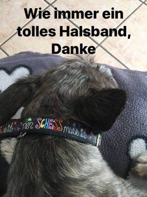 welches Lakritze-Näschen das von mir gefertigte Halsband nun trägt.