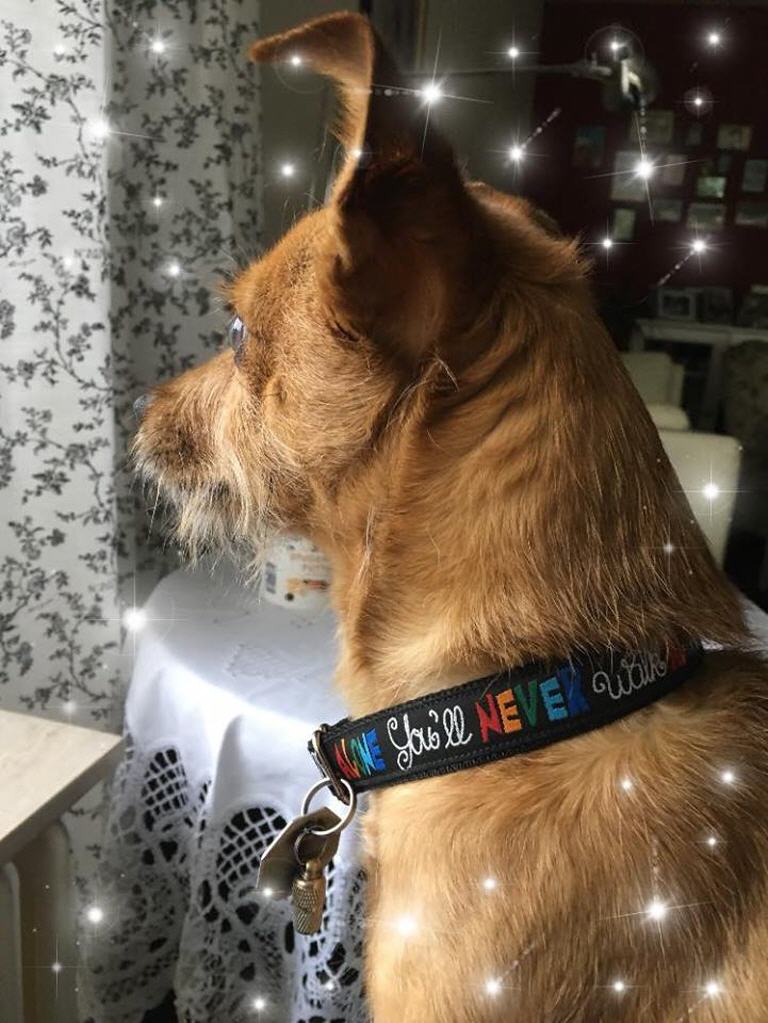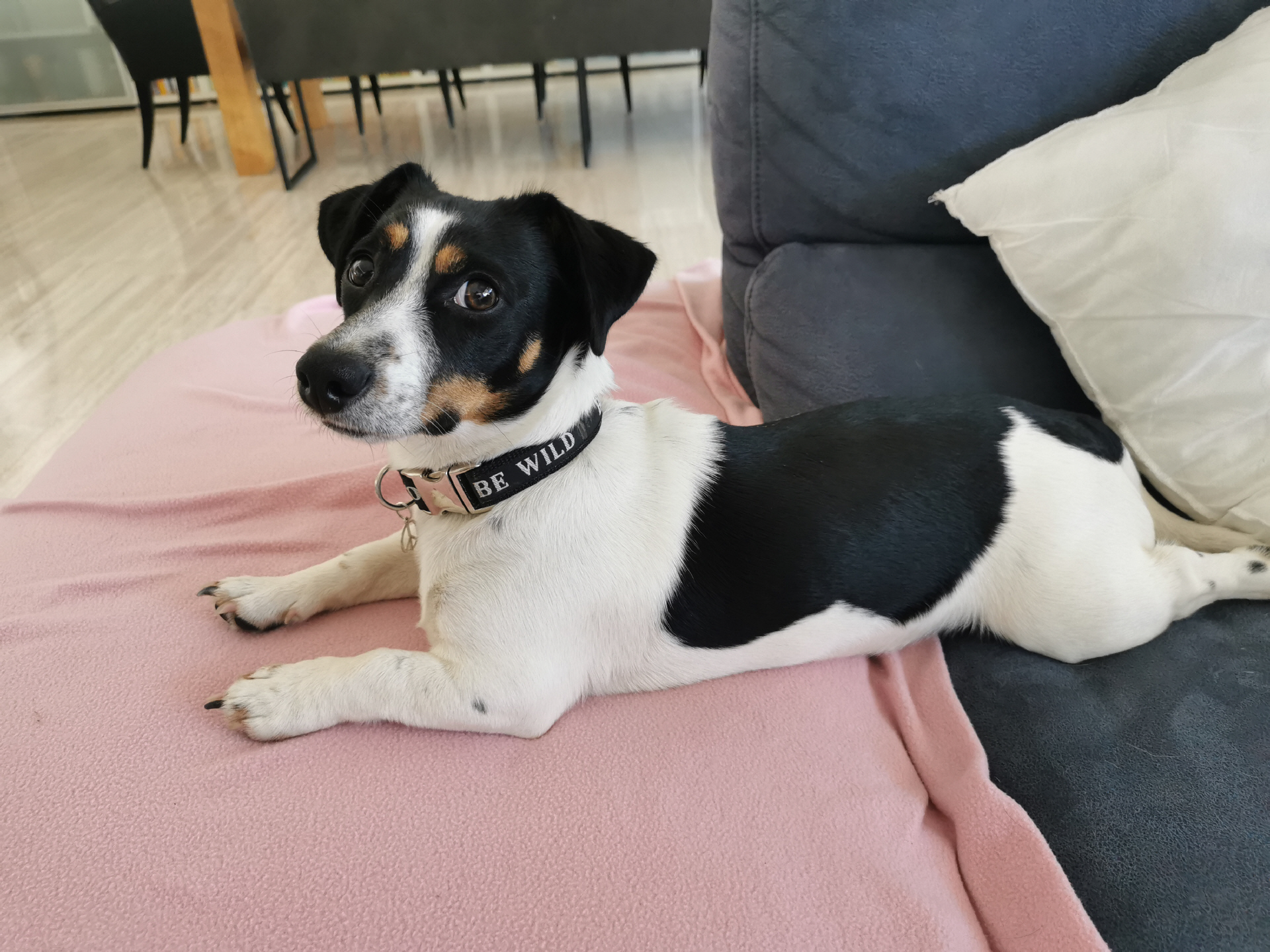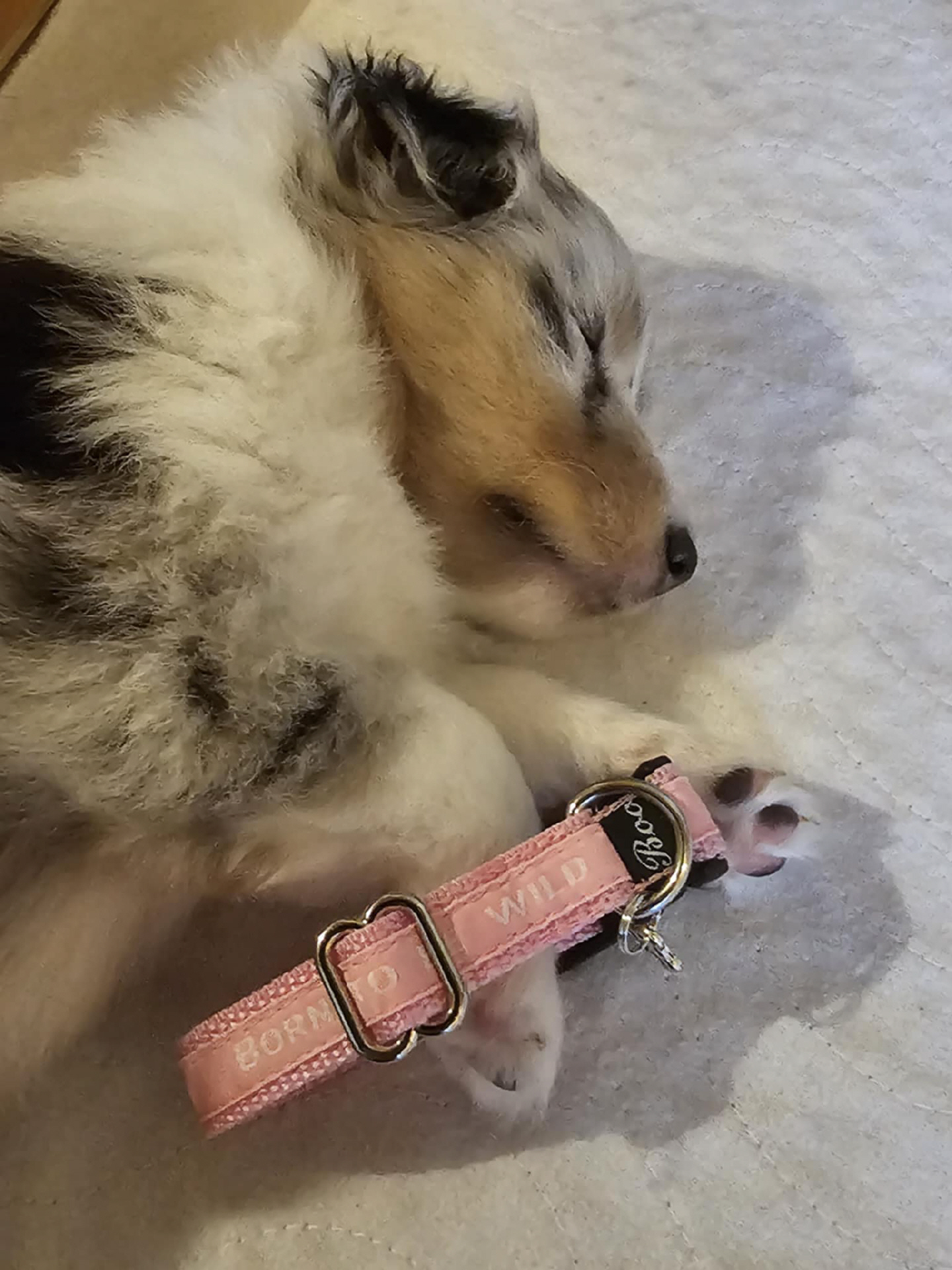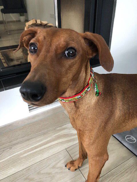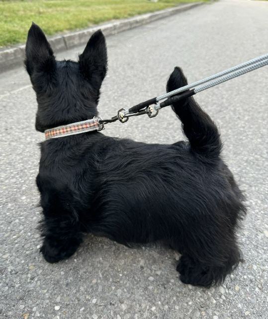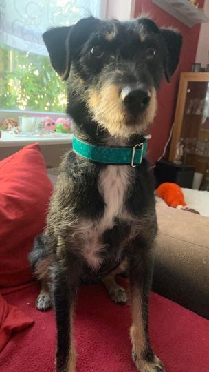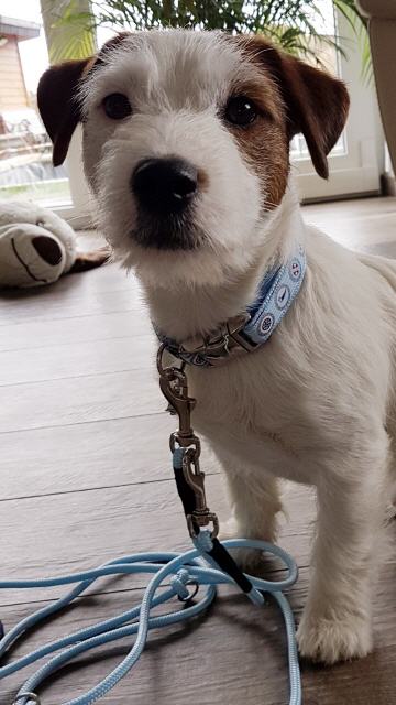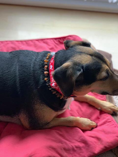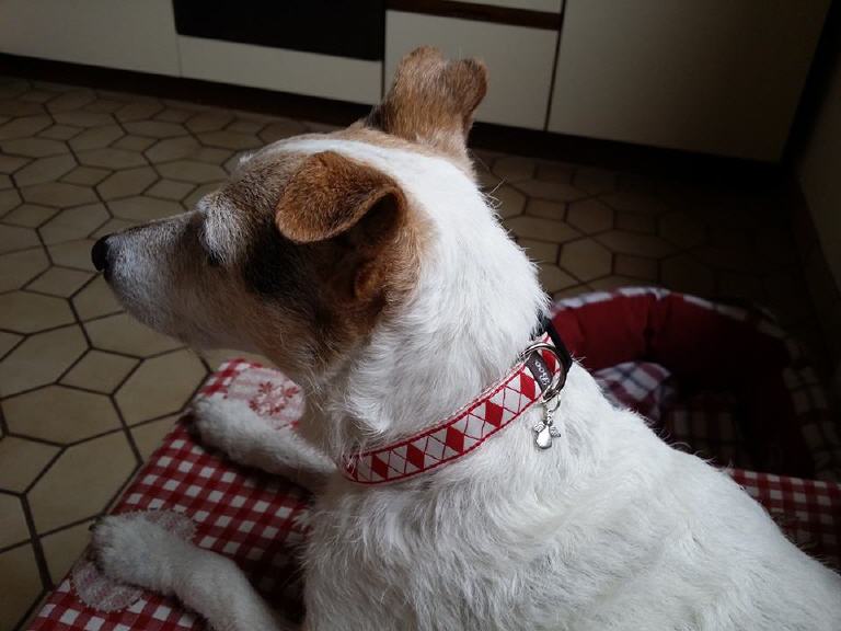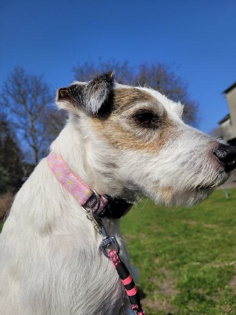 welches Lakritze-Näschen das von mir gefertigte Halsband nun trägt.