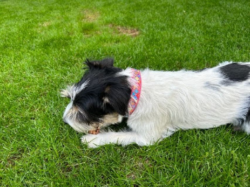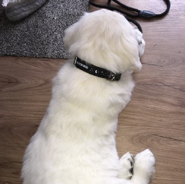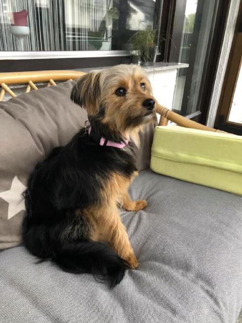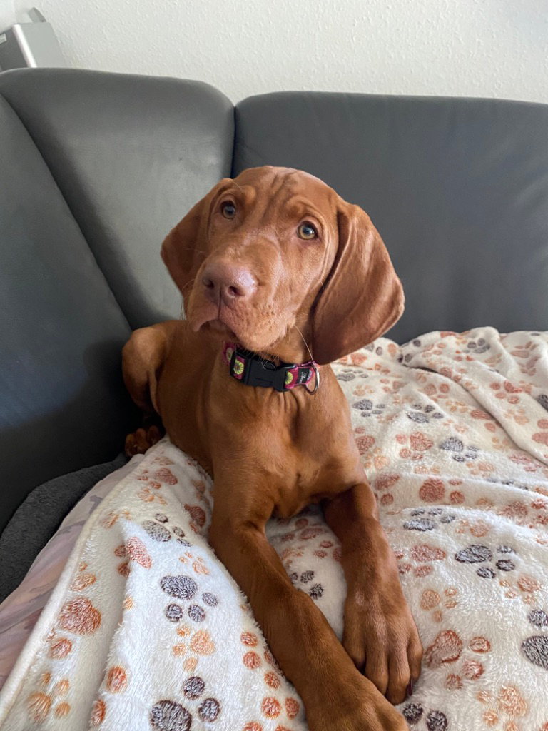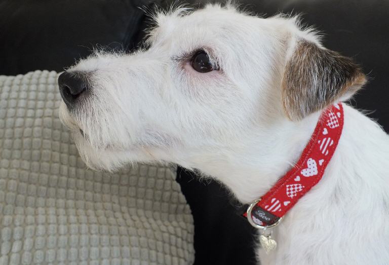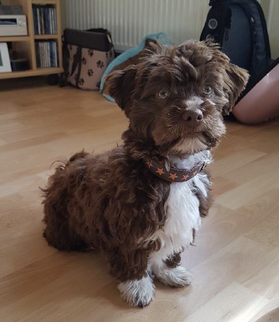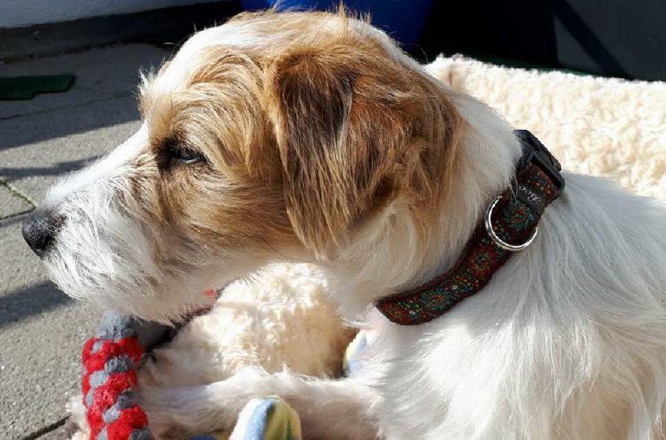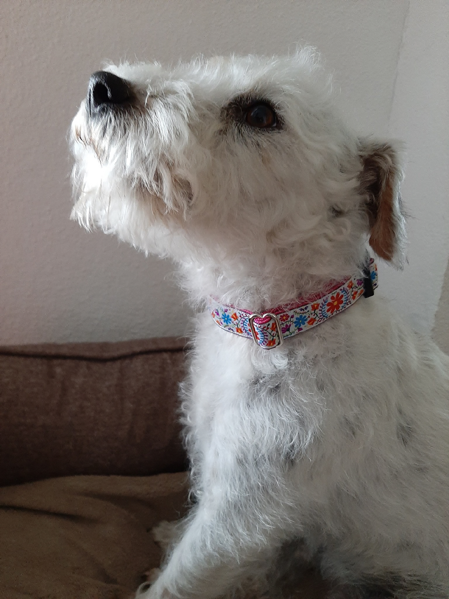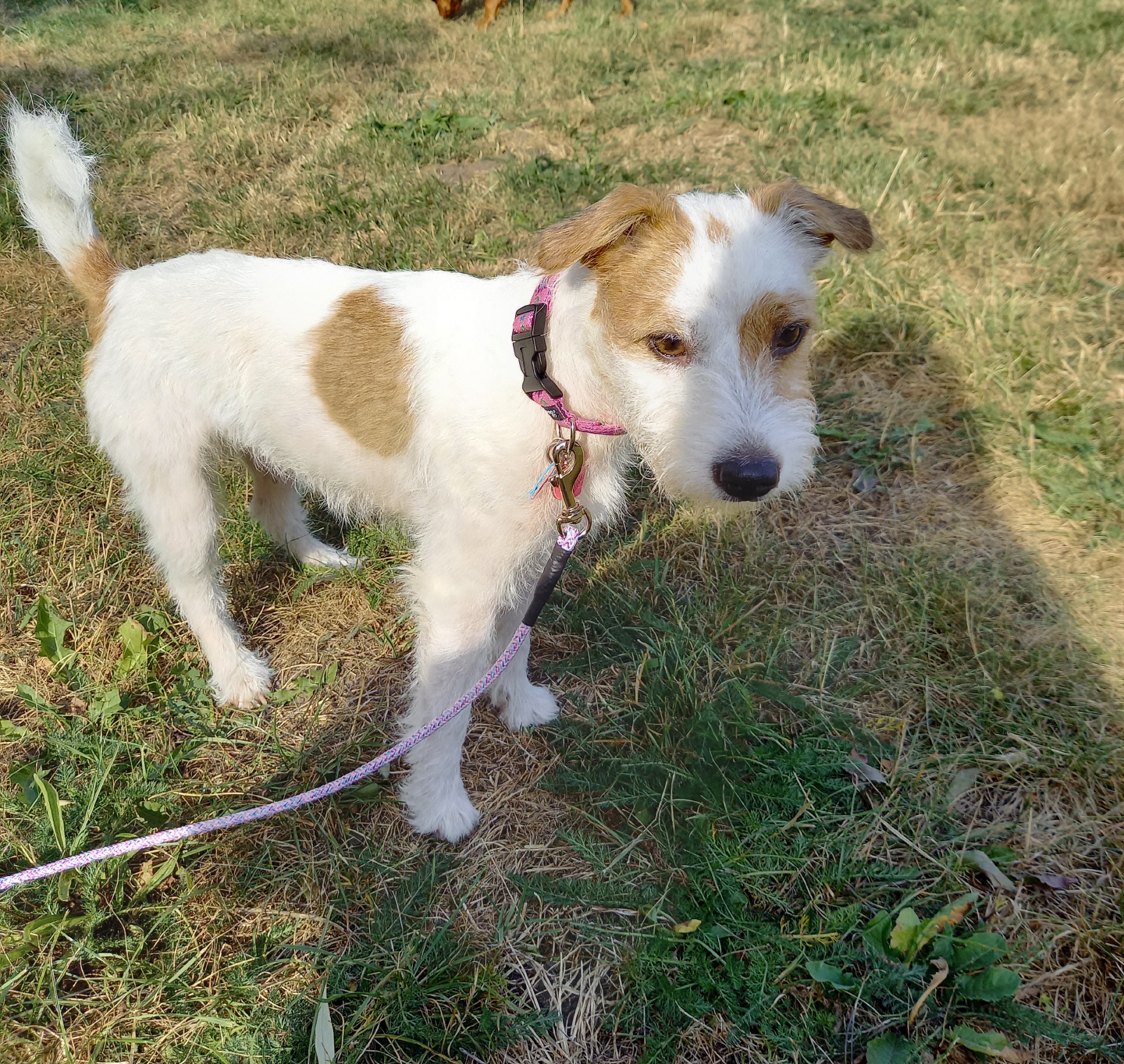 welches Lakritze-Näschen das von mir gefertigte Halsband nun trägt.