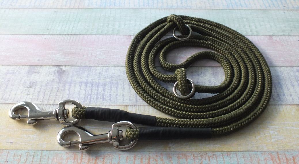 Die Rundleine Ganove hat tolle Farben die mit den Halsbändern von Boo's Halsbändern harmonieren, sie ist aus PPM liegt gut in der Hand und hat ein geringes Gewicht. Durch zwei eingeknotete Rundringe ist die Leine mehrfach verstellbar und du kannst diese auf deine persönlichen Wunschlängen einstellen. Die Gesamtlänge der Leinen gilt von Anfang bis Ende der Karabiner. Der Ganove wird von mir sorgfältig vernäht, die Naht wird mit einer Gummierun geschützt. Die Leine ist waschbar bis 30 Grad; meine Empfehlung ist Handwäsche, um die Materialien zu schonen.