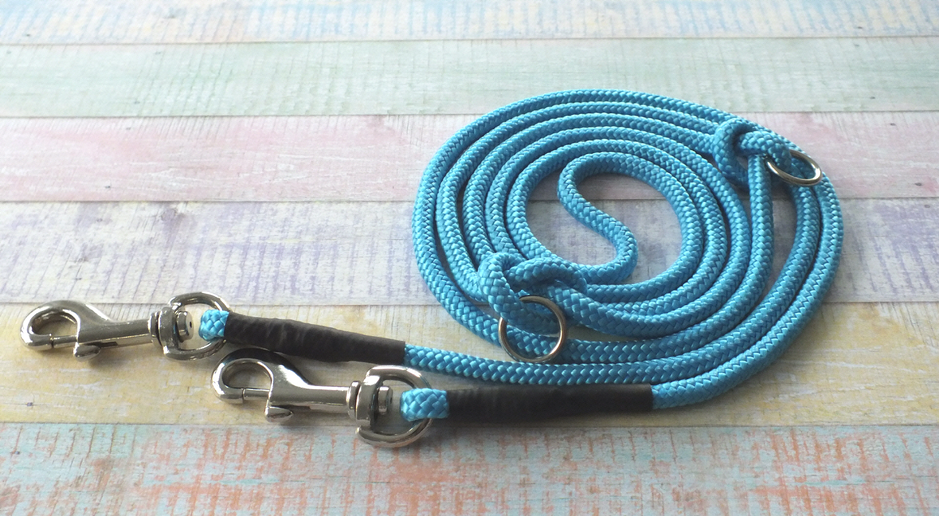 Die Rundleine Ganove hat tolle Farben die mit den Halsbändern von Boo's Halsbändern harmonieren, sie ist aus PPM liegt gut in der Hand und hat ein geringes Gewicht. Durch zwei eingeknotete Rundringe ist die Leine mehrfach verstellbar und du kannst diese auf deine persönlichen Wunschlängen einstellen. Die Gesamtlänge der Leinen gilt von Anfang bis Ende der Karabiner. Der Ganove wird von mir sorgfältig vernäht, die Naht wird mit einer Gummierun geschützt. Die Leine ist waschbar bis 30 Grad; meine Empfehlung ist Handwäsche, um die Materialien zu schonen.