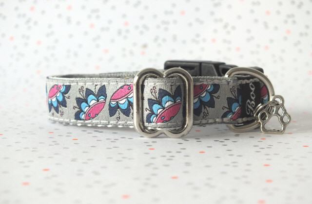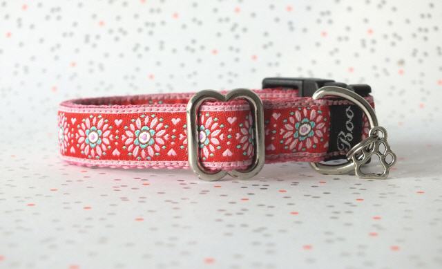 Liebe Züchter und zukünftige Welpen Eltern hier findest du leichte, kleine Welpen Halsbänder aus Gurtband in 1,5 cm Breite, mit unterschiedlichen, niedlichen und teilweise zuckersüßen detailverliebten Webband Motiven. Boo's Welpen Halsbänder Minni sind von mir ganz auf kleirassige Welpen zugeschnitten und eignen sich perfekt als erstes Halsband zum Auszug/ Einzug ins neue Zuhause. Der Halsumfang lässt sich durch einen Metall Schieber größenverstellen und reicht von ca. 16-25 cm oder ca. 17- 30 cm. Ein schwarzer Klickverschluss, leicht gewölbt, sorgt so für einen guten Sitz am Hals der Mini Lakritze-Nase. Der Anhänger am D-Ring ist nur Tüddelkrams fürs Foto und könnte anders ausfallen. Bei Nichtgefallen kann er ganz leicht von dir abgemacht werden. Viele Halsbänder sind Einzelstücke deshalb ist die Bestellmenge je Halsband Minni immer nur 1 x !