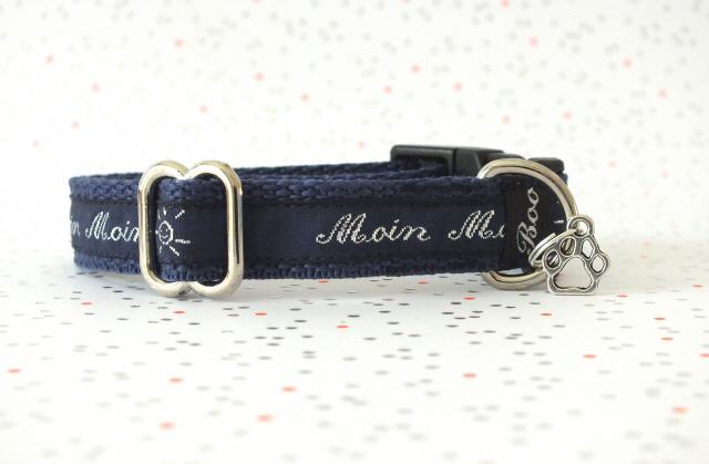 Liebe Züchter und zukünftige Welpen Eltern hier findest du leichte, kleine Welpen Halsbänder aus Gurtband in 1,5 cm Breite, mit unterschiedlichen, niedlichen und teilweise zuckersüßen detailverliebten Webband Motiven. Boo's Welpen Halsbänder Minni sind von mir ganz auf kleirassige Welpen zugeschnitten und eignen sich perfekt als erstes Halsband zum Auszug/ Einzug ins neue Zuhause. Der Halsumfang lässt sich durch einen Metall Schieber größenverstellen und reicht von ca. 16-25 cm oder ca. 17- 30 cm. Ein schwarzer Klickverschluss, leicht gewölbt, sorgt so für einen guten Sitz am Hals der Mini Lakritze-Nase. Der Anhänger am D-Ring ist nur Tüddelkrams fürs Foto und könnte anders ausfallen. Bei Nichtgefallen kann er ganz leicht von dir abgemacht werden. Viele Halsbänder sind Einzelstücke deshalb ist die Bestellmenge je Halsband Minni immer nur 1 x !
