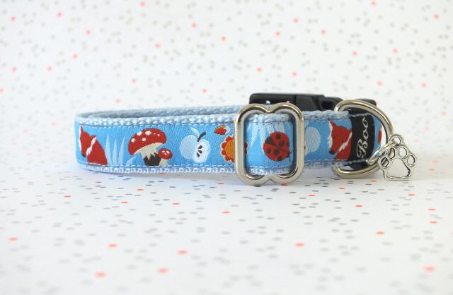 Liebe Züchter und zukünftige Welpen Eltern hier findest du leichte, kleine Welpen Halsbänder aus Gurtband in 1,5 cm Breite, mit unterschiedlichen, niedlichen und teilweise zuckersüßen detailverliebten Webband Motiven. Boo's Welpen Halsbänder Minni sind von mir ganz auf kleirassige Welpen zugeschnitten und eignen sich perfekt als erstes Halsband zum Auszug/ Einzug ins neue Zuhause. Der Halsumfang lässt sich durch einen Metall Schieber größenverstellen und reicht von ca. 16-25 cm oder ca. 17- 30 cm. Ein schwarzer Klickverschluss, leicht gewölbt, sorgt so für einen guten Sitz am Hals der Mini Lakritze-Nase. Der Anhänger am D-Ring ist nur Tüddelkrams fürs Foto und könnte anders ausfallen. Bei Nichtgefallen kann er ganz leicht von dir abgemacht werden. Viele Halsbänder sind Einzelstücke deshalb ist die Bestellmenge je Halsband Minni immer nur 1 x !