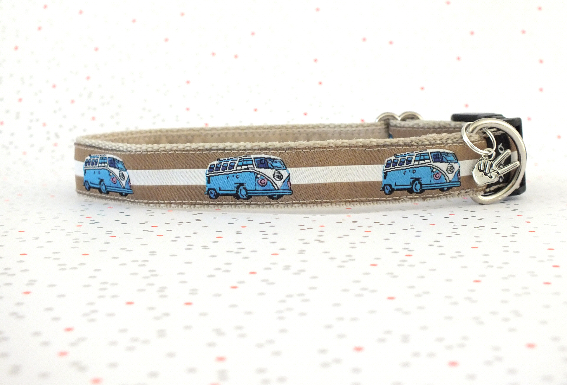 Das Halsband hat eine aufgenähte Webbordüre und eine samtig weiche Unterfütterung. Durch einen Metall Schieber ist es stufenlos größenverstellbar ohne am Hals zu verrutschen. Leicht gewölbt sorgt ein schwarzer Klickverschluss für einen guten Sitz am Hundehals. Der kleine Anhänger ist nur Tüddelkrams fürs Foto und könnte anders ausfallen. Das Material ist waschbar bis 30 Grad. Meine Empfehlung für dich ist Handwäsche um die tollen Farben und das Material zu schonen.