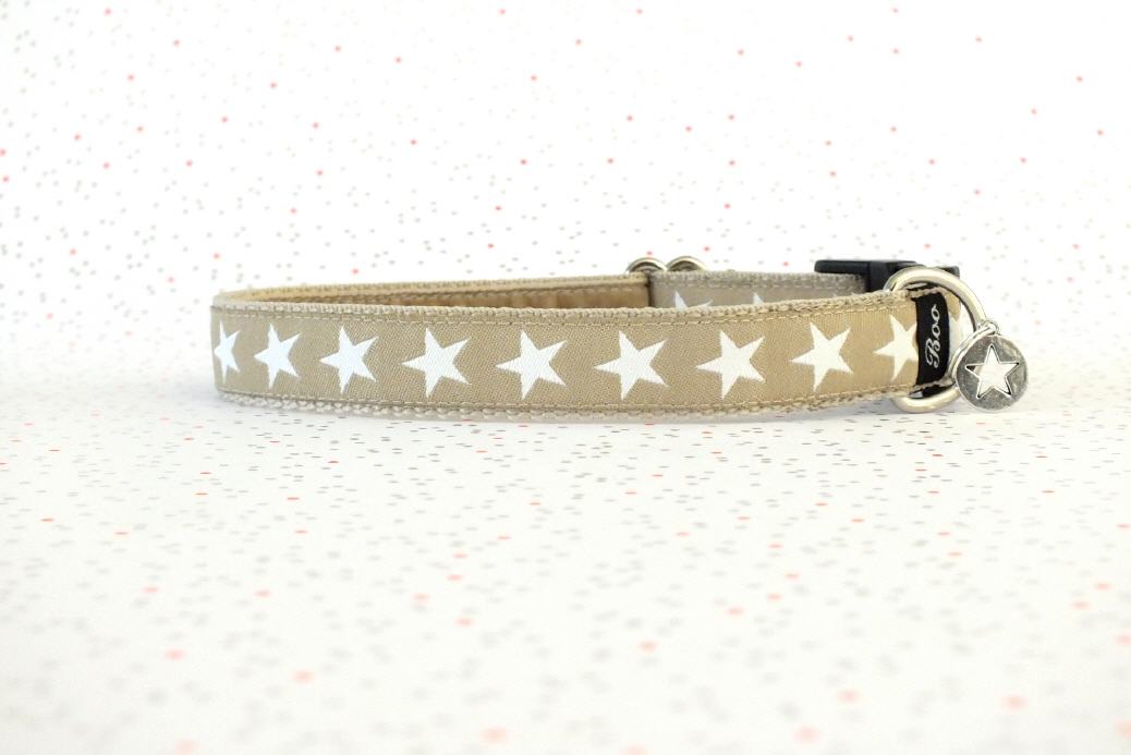 Das Halsband hat eine aufgenähte Webbordüre und eine samtig weiche Unterfütterung. Durch einen Metall Schieber ist es stufenlos größenverstellbar ohne am Hals zu verrutschen. Leicht gewölbt sorgt ein schwarzer Klickverschluss für einen guten Sitz am Hundehals. Der kleine Anhänger ist nur Tüddelkrams fürs Foto und könnte anders ausfallen. Das Material ist waschbar bis 30 Grad. Meine Empfehlung für dich ist Handwäsche um die tollen Farben und das Material zu schonen.
