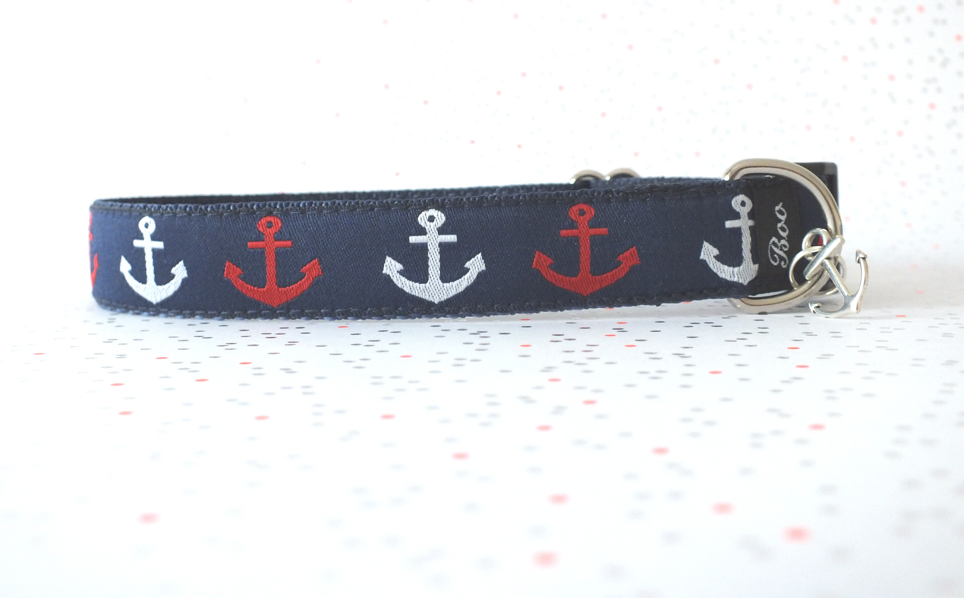 Hunde Halsband mit einer aufgenähten Webbordüre und einer samtig weichen Unterfütterung. Durch einen Metall Schieber ist das Halsband stufenlos größenverstellbar von ca. 19-30 cm oder ca. 22-35 cm ohne am Hals zu verrutschen. Leicht gewölbt sorgt ein schwarzer Klickverschluss für einen guten Sitz am Hundehals. Das Halsband ist als Variante auch mit einem Aluverschluss oder als Zugstopp Halsband möglich. Die Auswahl findest du unten. Der kleine Anhänger ist nur Tüddelkrams fürs Foto und kann bei Nichtgefallen ganz leicht von dir abgemacht werden. Das Halsband ist waschbar bis 30 Grad. Meine Empfehlung für dich ist Handwäsche um die tollen Farben und das Material zu schonen. Weitere Infos zum Halsband findest du unter Info.