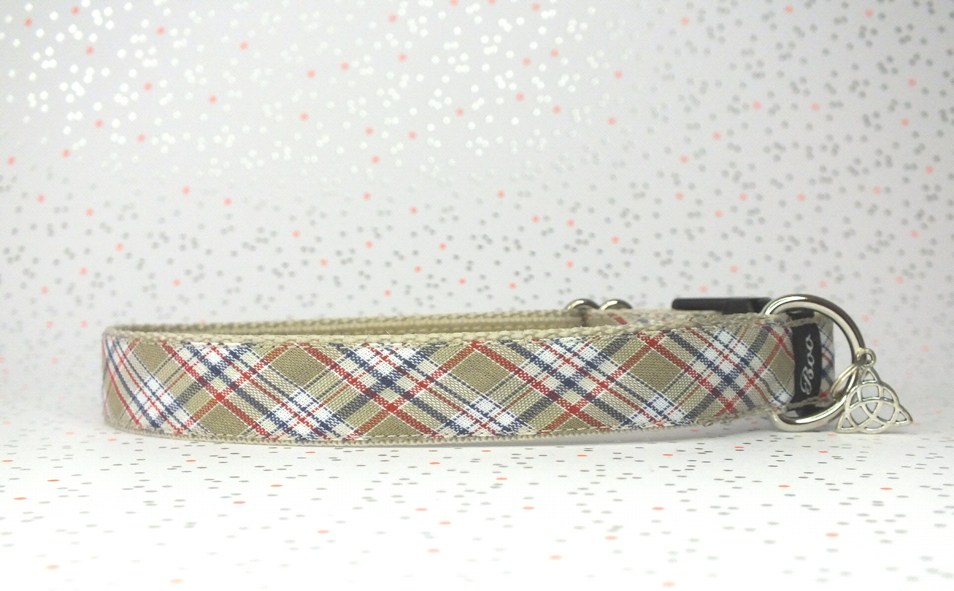 Das Halsband hat eine aufgenähte Webbordüre und eine samtig weiche Unterfütterung. Durch einen Metall Schieber ist es stufenlos größenverstellbar ohne am Hals zu verrutschen. Leicht gewölbt sorgt ein schwarzer Klickverschluss für einen guten Sitz am Hundehals. Der kleine Anhänger ist nur Tüddelkrams fürs Foto und könnte anders ausfallen. Das Material ist waschbar bis 30 Grad. Meine Empfehlung für dich ist Handwäsche um die tollen Farben und das Material zu schonen.