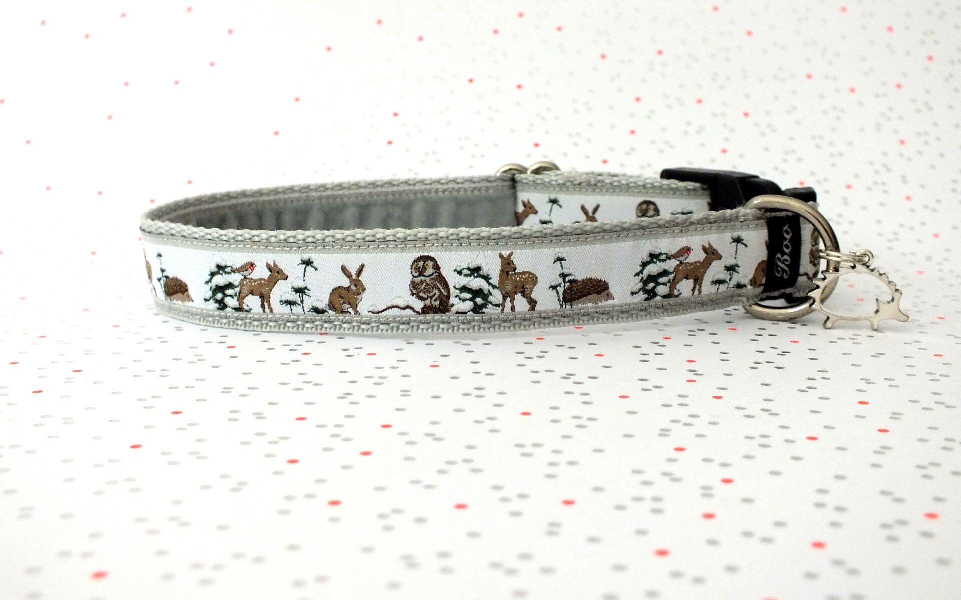 Halsband mit einer aufgenähten Webbordüre und einer samtig weichen Unterfütterung. Durch einen Metall Schieber ist das Halsband stufenlos größenverstellbar von ca. 19-30 cm oder ca. 22-35 cm ohne am Hals zu verrutschen. Leicht gewölbt sorgt ein schwarzer Klickverschluss für einen guten Sitz am Hundehals. Oft als Variante auch mit einem Aluverschluss oder als Zugstopp Halsband möglich. Die Auswahl findest du unten. Der kleine Anhänger ist nur Tüddelkrams fürs Foto und kann bei Nichtgefallen ganz leicht von dir abgemacht werden. Das Halsband ist waschbar bis 30 Grad. Meine Empfehlung für dich ist Handwäsche um die tollen Farben und das Material zu schonen. Weitere Infos zum Halsband findest auf der Infoseite.