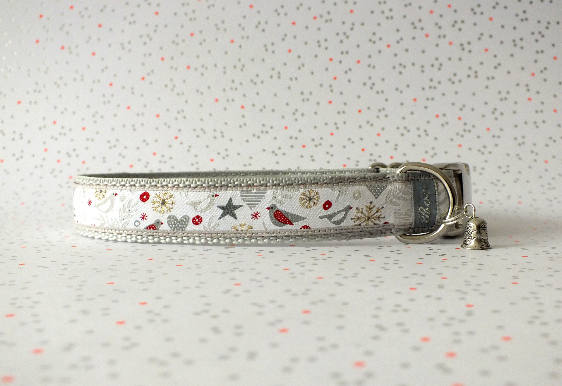 Halsband mit einer aufgenähten Webbordüre und einer samtig weichen Unterfütterung. Durch einen Metall Schieber ist das Halsband stufenlos größenverstellbar von ca. 19-30 cm oder ca. 22-35 cm ohne am Hals zu verrutschen. Halsband mit einem Aluverschluss. Die Auswahl findest du unten. Der kleine Anhänger ist nur Tüddelkrams fürs Foto und kann bei Nichtgefallen ganz leicht von dir abgemacht werden. Das Halsband ist waschbar bis 30 Grad. Meine Empfehlung für dich ist Handwäsche um die tollen Farben und das Material zu schonen. Weitere Infos zum Halsband findest auf der Infoseite.