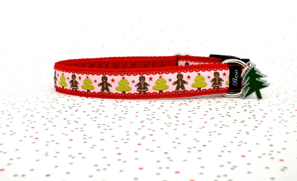 Halsband mit einer aufgenähten Webbordüre und einer samtig weichen Unterfütterung. Durch einen Metall Schieber ist das Halsband stufenlos größenverstellbar von ca. 19-30 cm oder ca. 22-35 cm ohne am Hals zu verrutschen. Leicht gewölbt sorgt ein schwarzer Klickverschluss für einen guten Sitz am Hundehals. Oft als Variante auch mit einem Aluverschluss. Die Auswahl findest du unten. Der kleine Anhänger ist nur Tüddelkrams fürs Foto und kann bei Nichtgefallen ganz leicht von dir abgemacht werden. Das Halsband ist waschbar bis 30 Grad. Meine Empfehlung für dich ist Handwäsche um die tollen Farben und das Material zu schonen. Weitere Infos zum Halsband findest auf der Infoseite.