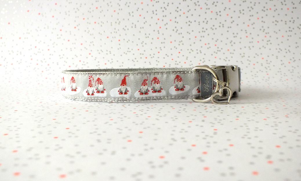 Halsband mit einer aufgenähten Webbordüre und einer samtig weichen Unterfütterung. Durch einen Metall Schieber ist das Halsband stufenlos größenverstellbar von ca. 19-30 cm oder ca. 22-35 cm ohne am Hals zu verrutschen. Leicht gewölbt sorgt ein schwarzer Klickverschluss für einen guten Sitz am Hundehals. Oft als Variante auch mit einem Aluverschluss. Die Auswahl findest du unten. Der kleine Anhänger ist nur Tüddelkrams fürs Foto und kann bei Nichtgefallen ganz leicht von dir abgemacht werden. Das Halsband ist waschbar bis 30 Grad. Meine Empfehlung für dich ist Handwäsche um die tollen Farben und das Material zu schonen. Weitere Infos zum Halsband findest auf der Infoseite.