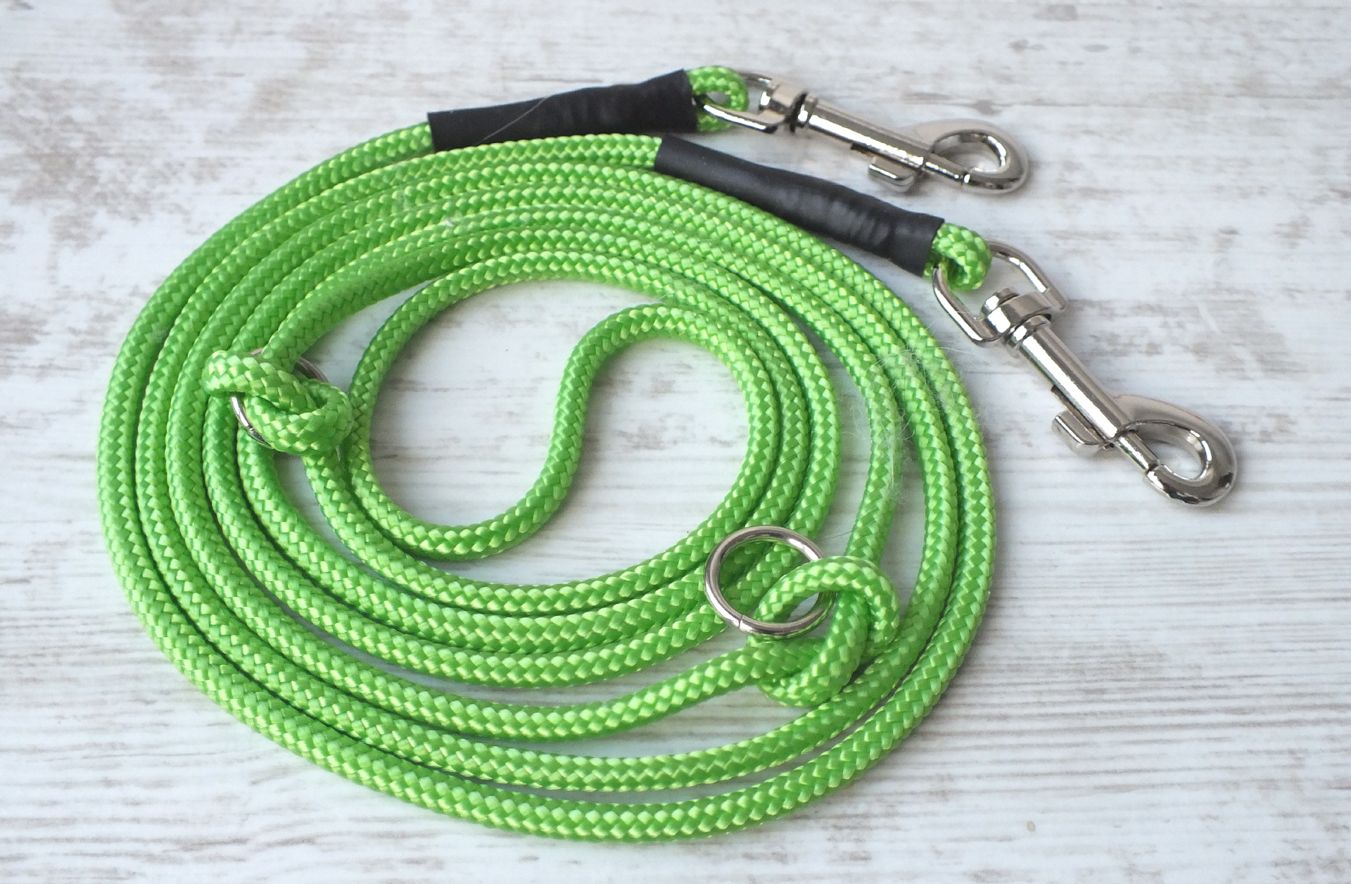 Rundleine für kleinrassige Welpen. Der Halunke ist aus PPM, hat ein geringes Gewicht und extra kleine Karabiner, damit diese nicht wie Gewichte am Hals deines Welpen hängen ;) Die Farbe der Leine harmoniert mit den Welpen Halsbändern Minni. Durch zwei kleine eingeknotete Rundringe ist die Leine mehrfach verstellbar und du kannst diese auf deine persönlichen Wunschlängen einstellen. Die Gesamtlänge der Leinen gilt von Anfang bis Ende der Karabiner. Der Halunke wird von mir sorgfältig vernäht, die Naht wird mit einer Gummierun geschützt. Die Leine ist waschbar bis 30 Grad; meine Empfehlung ist Handwäsche, um die Materialien zu schonen.